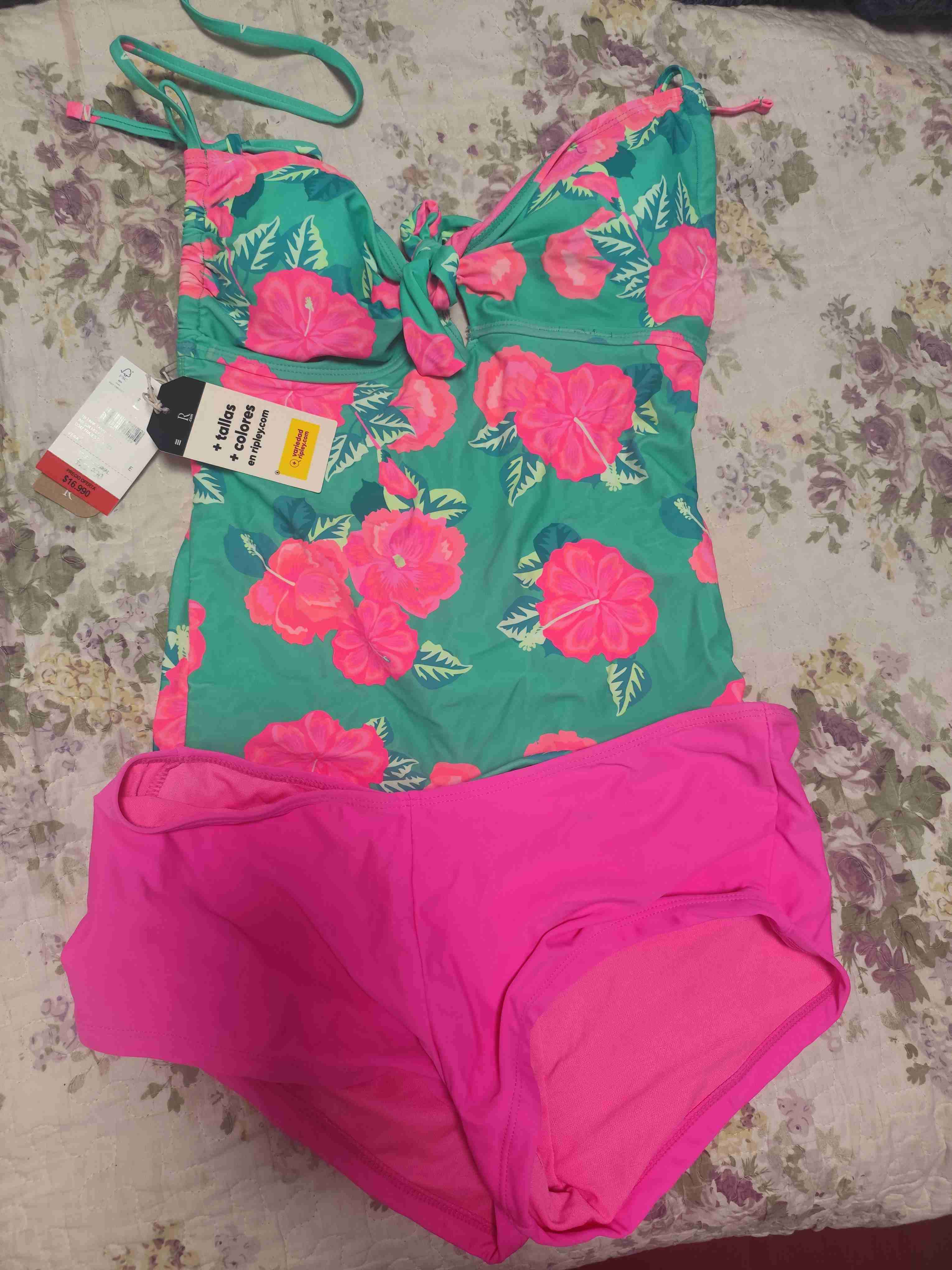 Traje de baño con estampado floral tropical de dos piezas TALLA L. Estado impecable. Lo vendo solamente porque me equivoqué de talla, es hermoso.