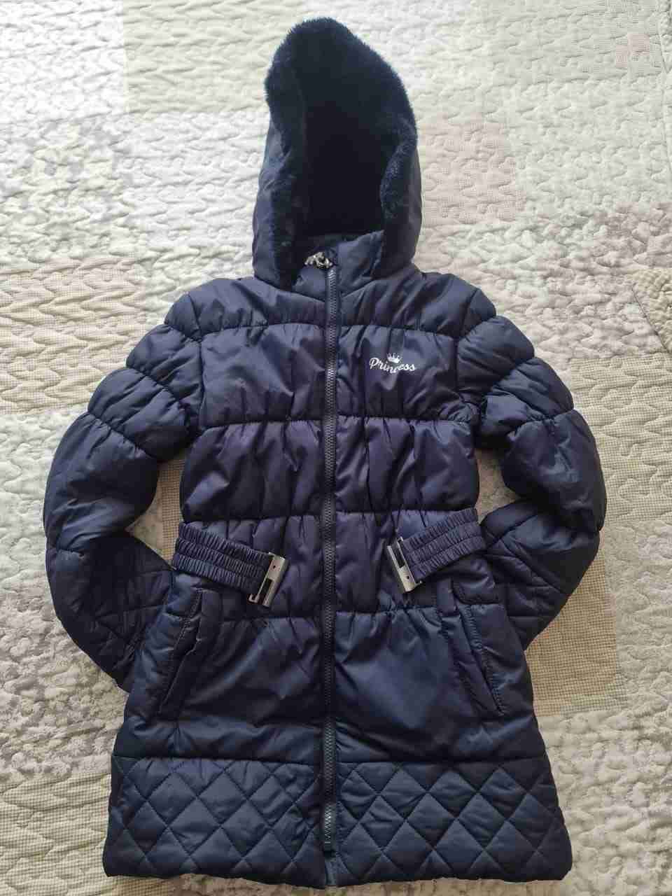 Parka acolchada, color azul oscuro. Ideal para días fríos, con diseño moderno y gorro incluido. En buen estado. Talla 12 (valor real 29.990)