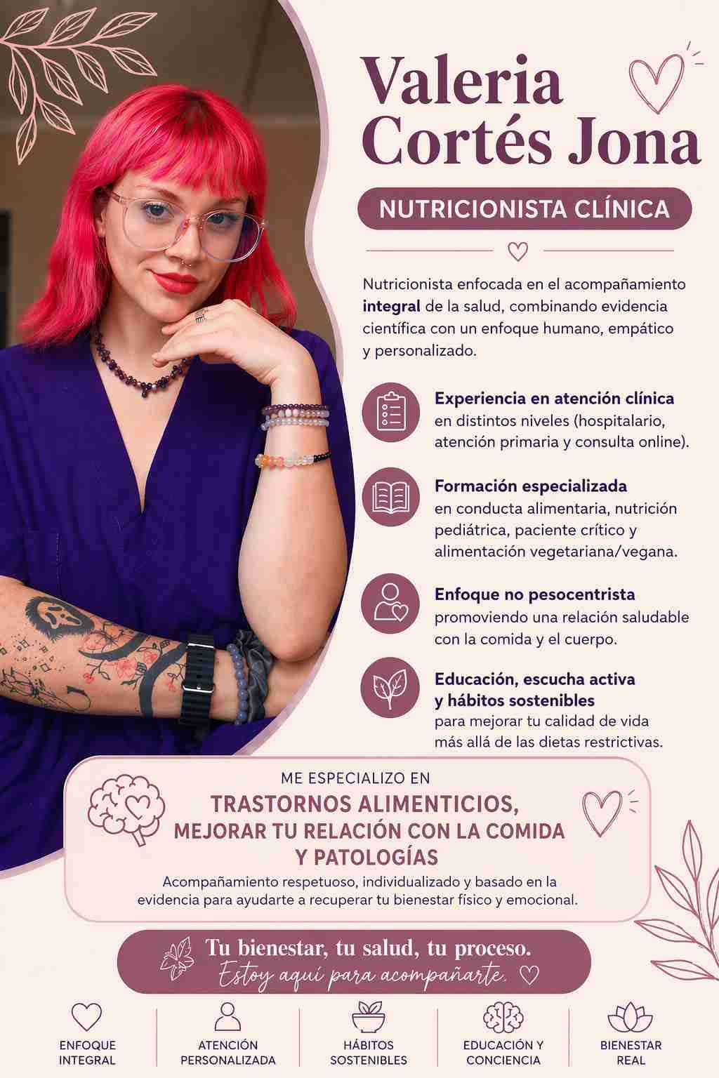 Hola! Soy Valeria Nutricionista Clínica con enfoque no peso-centrista Te ayudo a mejorar tu relación con la comida, controlar tus patologías y a mantener hábitos saludables de forma sostenible ❤️🩹 Sesiones online