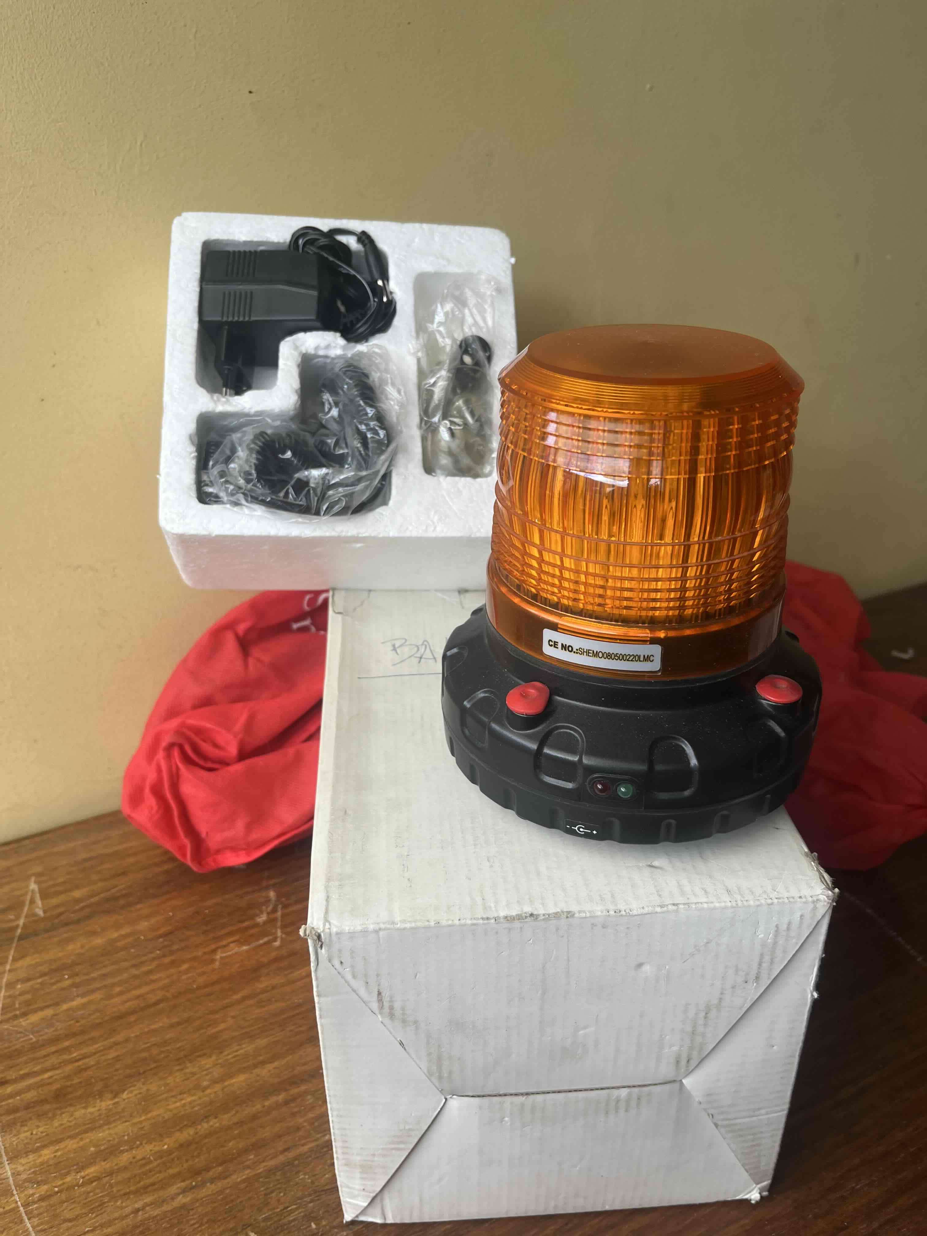 Baliza LED ámbar ideal para señalización. Incluye cargador y accesorios. En buen estado. Marca Sain