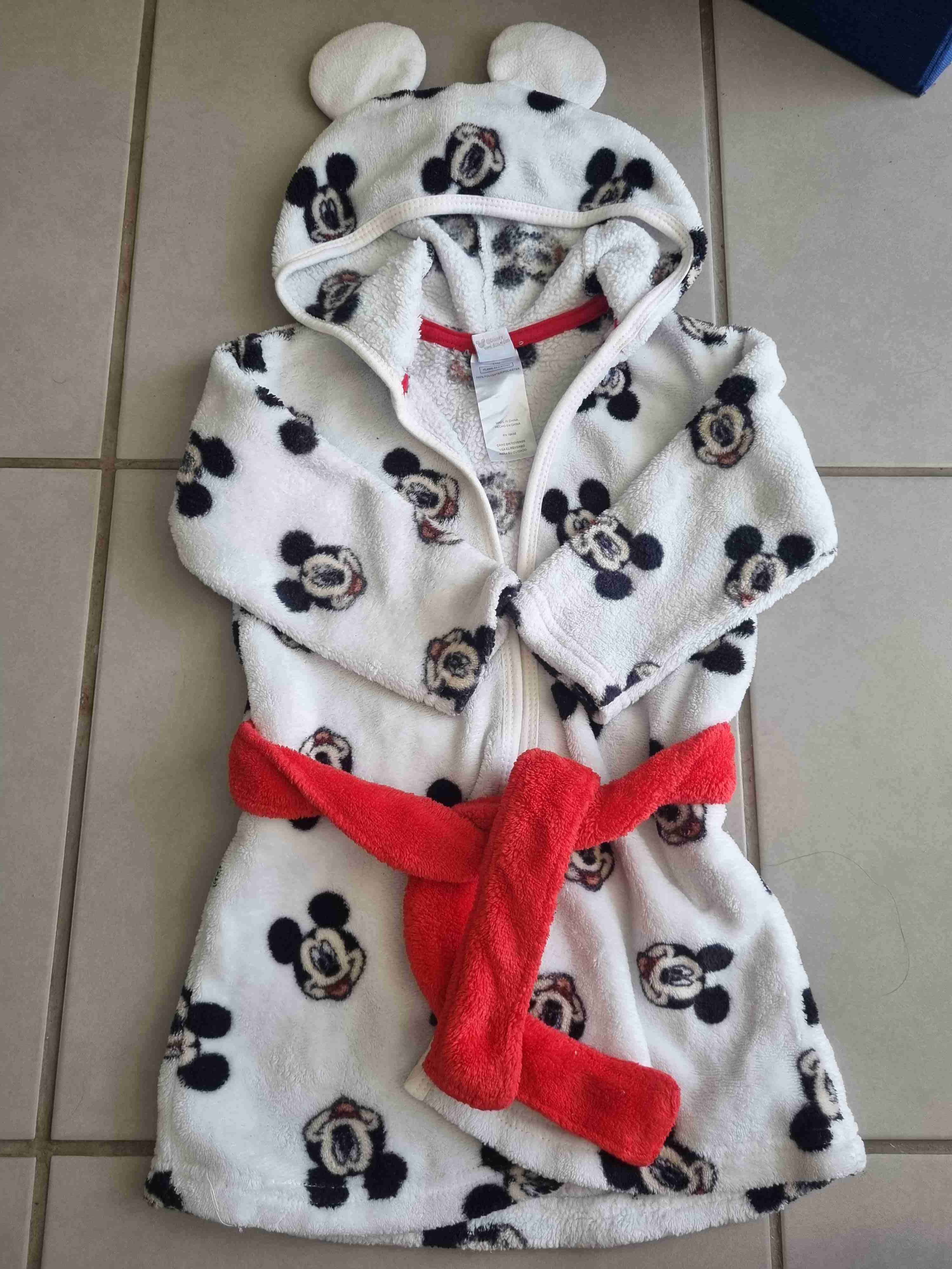 Bata suave para niños con diseño de Mickey Mouse. Incluye capucha con orejas y cinturón rojo. Ideal para el invierno. Es de polar. Original Disney