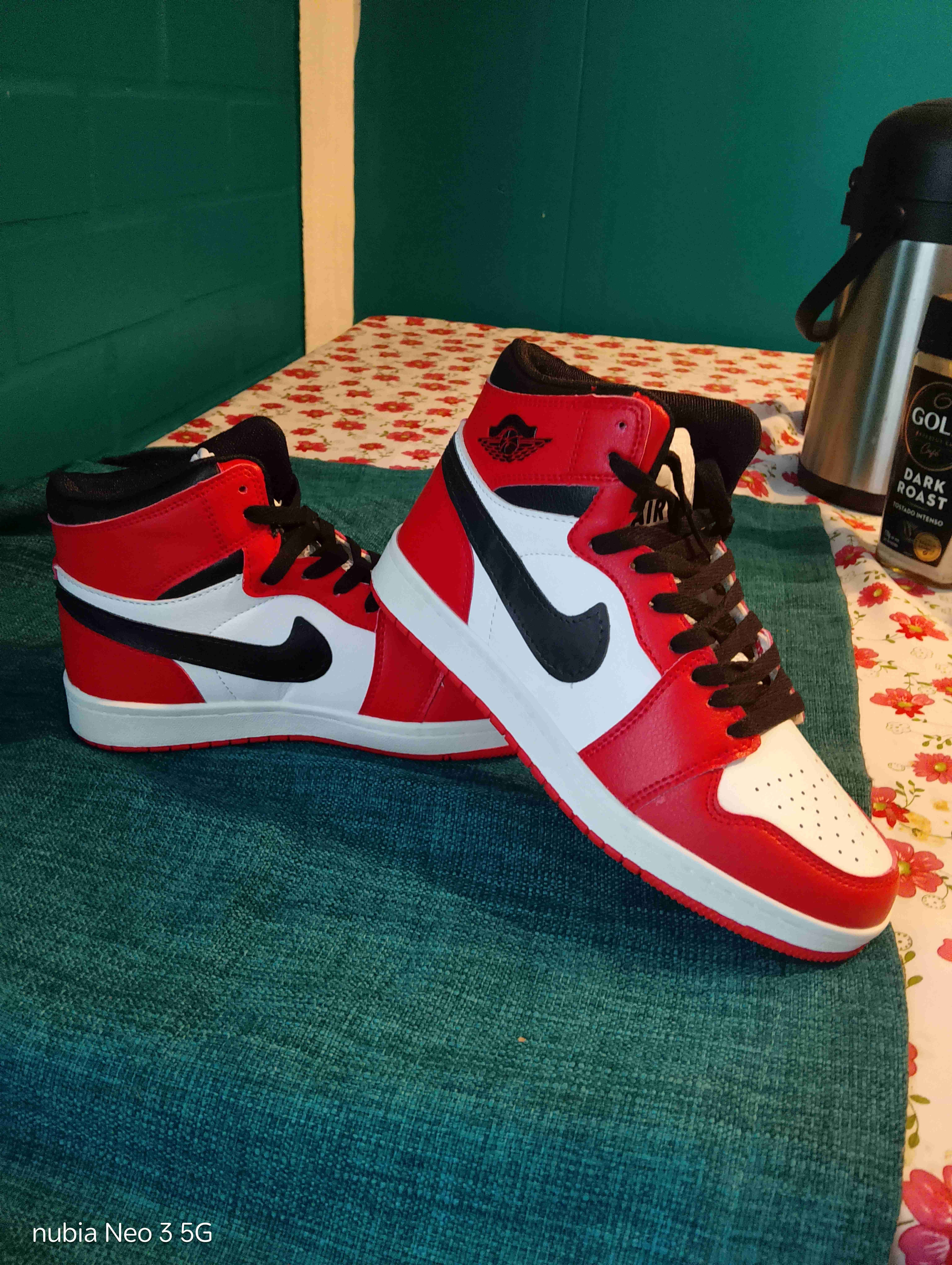 Zapatillas deportivas de estilo clásico en rojo y blanco, en buen estado con ligeros signos de uso. Perfectas para el día a día o para coleccionistas.