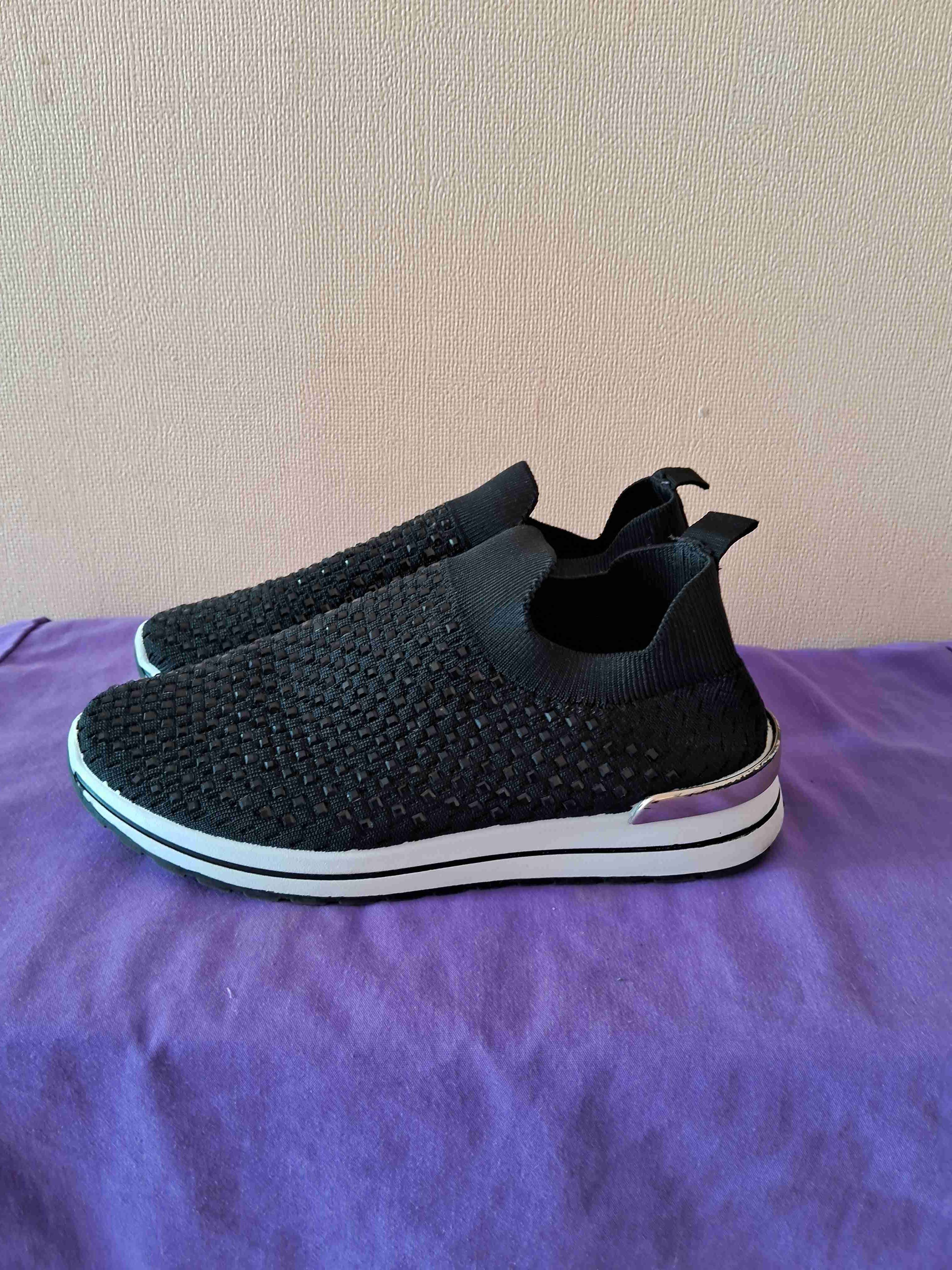 Cómodas zapatillas deportivas negras para uso diario. Se ven en buen estado y son ideales para caminar.