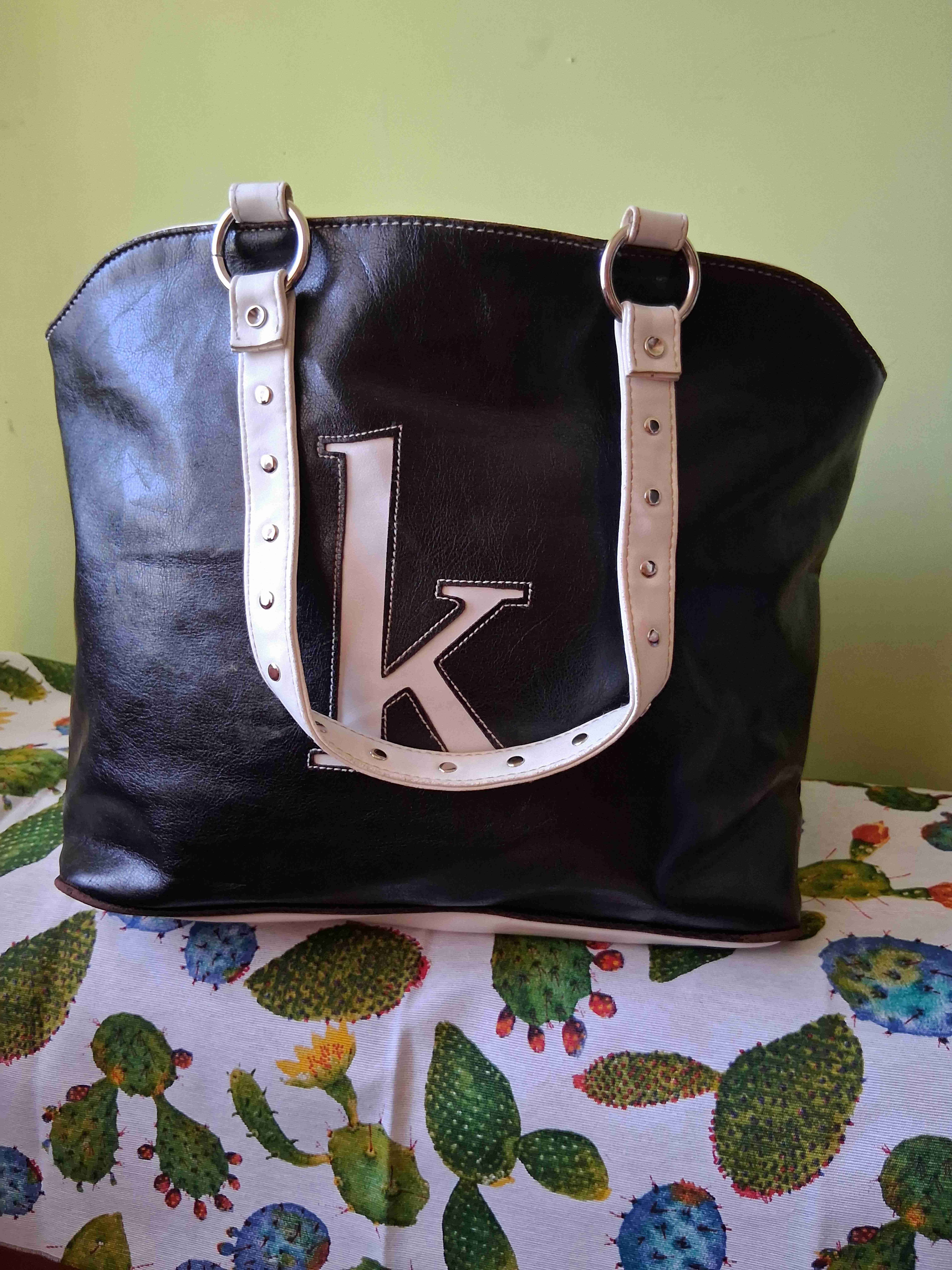 Bolso elegante y espacioso, negro con logo 'K'. En buen estado, ideal para uso diario o trabajo.