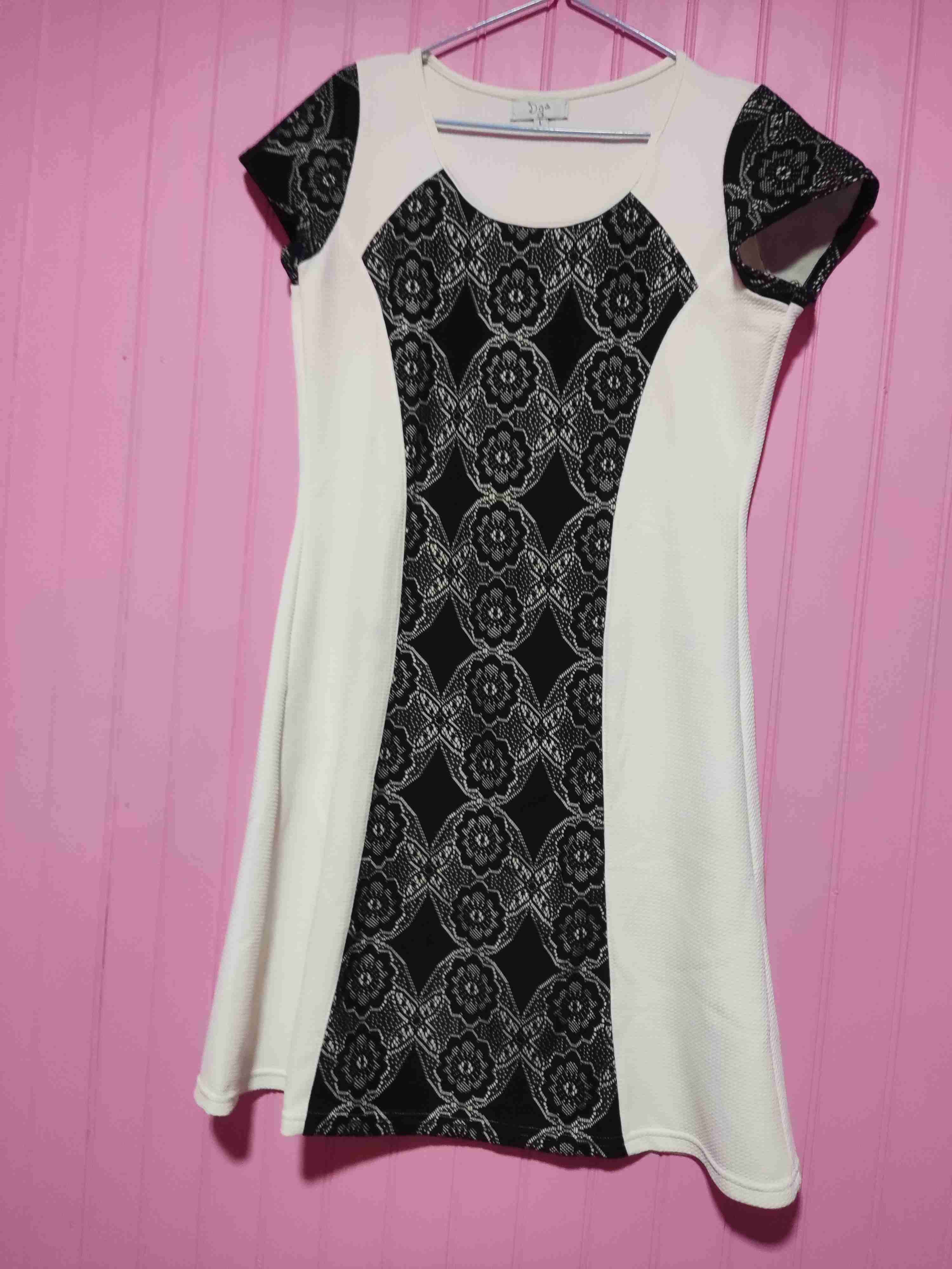 Vestido para mujer en tonos blanco y negro con diseño floral. Ideal para ocasiones formales. En buen estado.