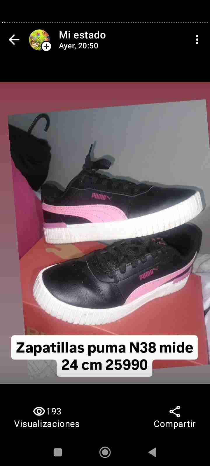 Zapatillas deportivas Puma en buen estado, color negro con detalles rosas. Talla 38, ideal para uso diario.