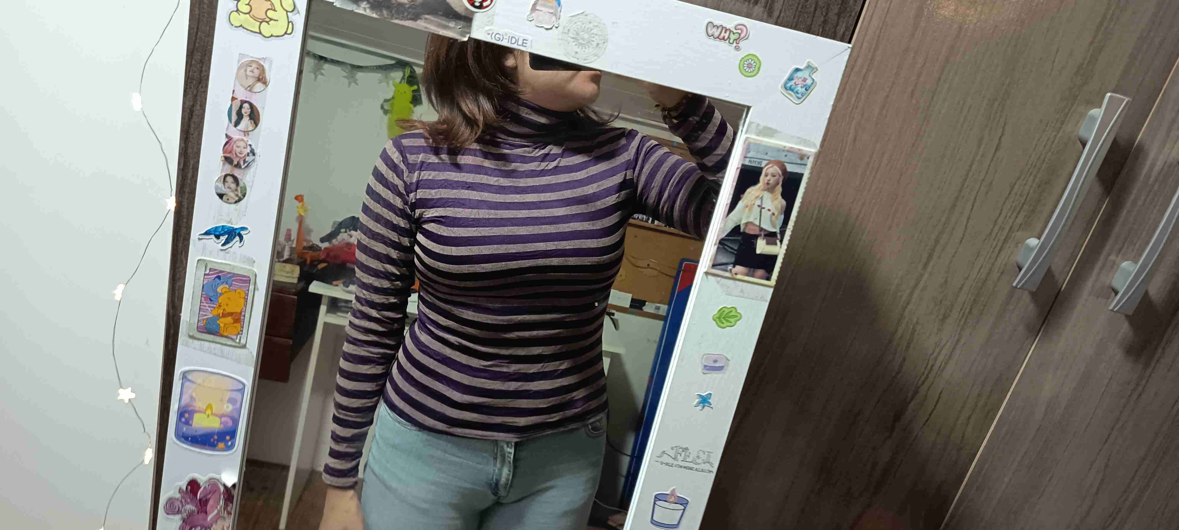 Polera de manga larga con rayas horizontales púrpura y negras. Ideal para uso diario, en buen estado.