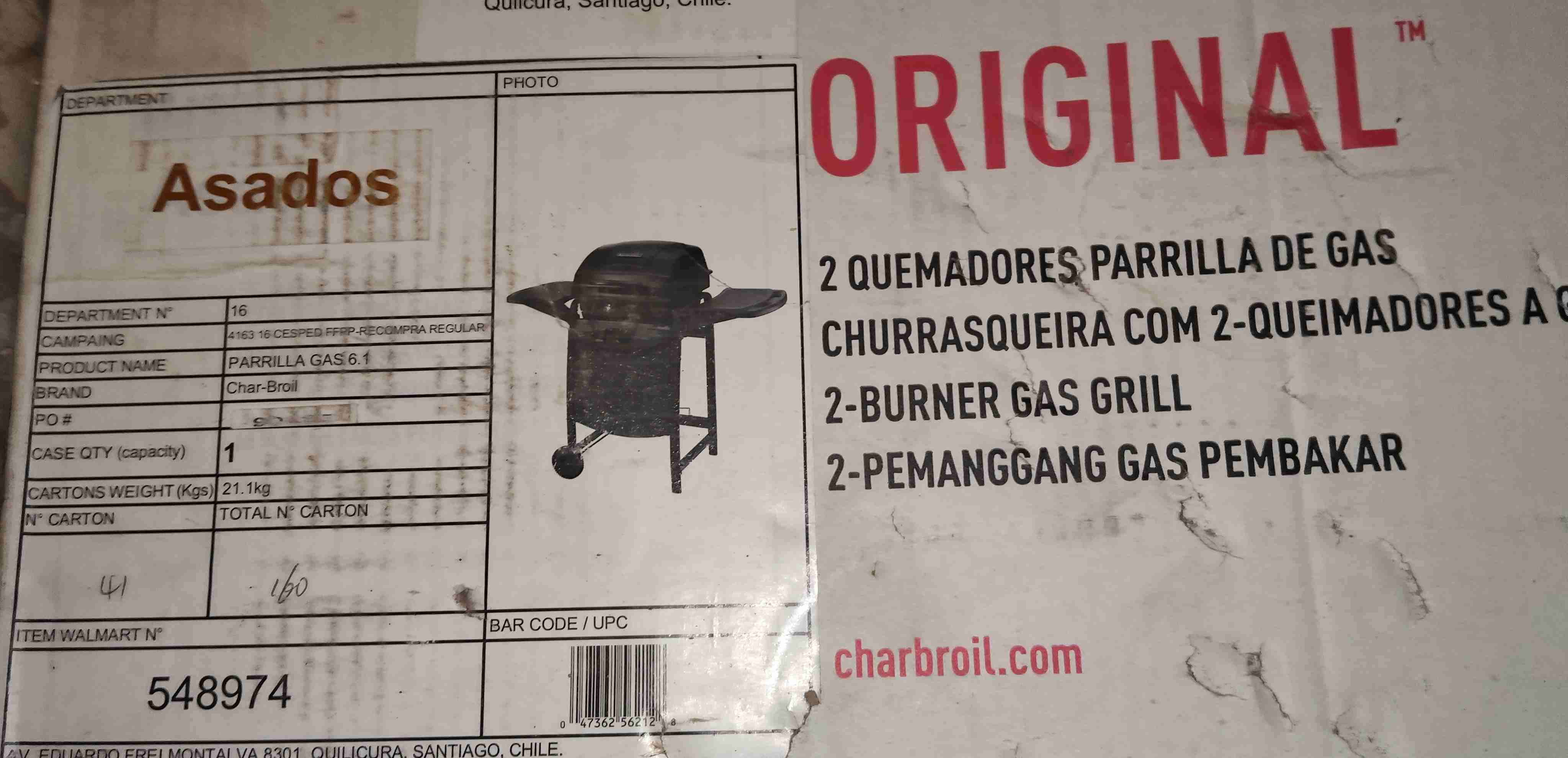 Parrilla de gas de 2 quemadores ideal para asados. En buen estado, perfecta para reuniones familiares. Nueva, en su caja. Sellada.