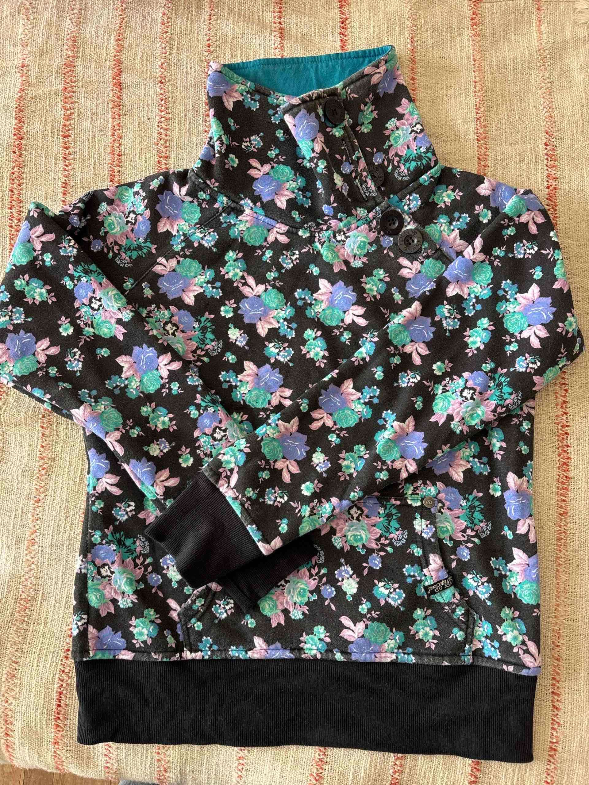 Poleron abrigado con diseño floral, perfecto para el invierno. Estado bueno Talla M Marca ripcurl