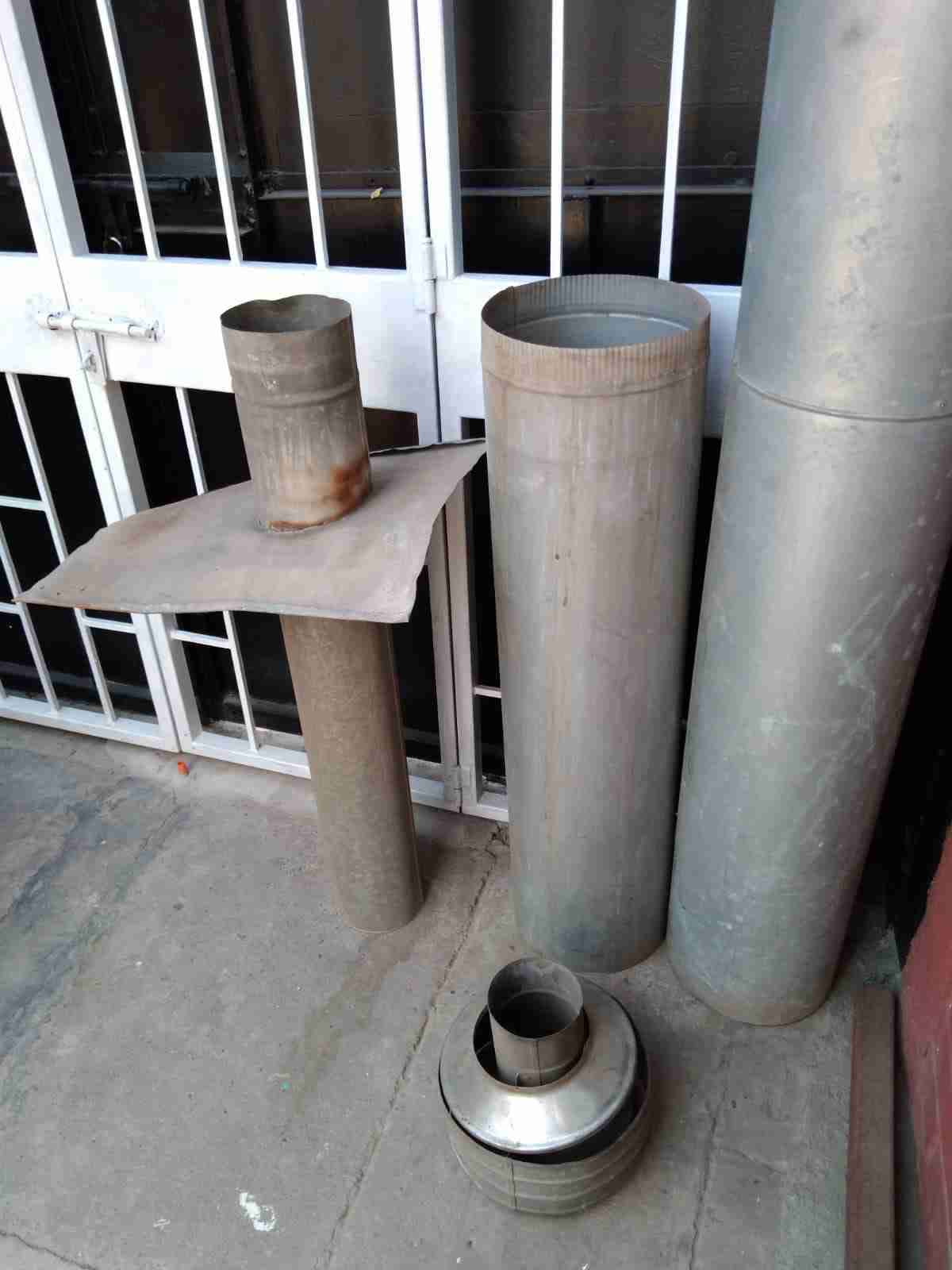 Conjunto de tubos de acero utilizados, ideal para sistemas de ventilación o calefacción. Presentan desgaste leve por uso pero están en buen estado general.