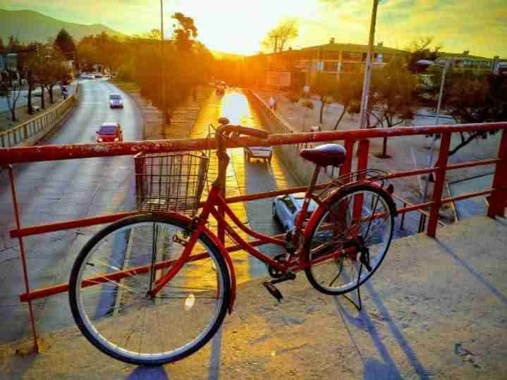 Bicicleta Vintage roja con cesta