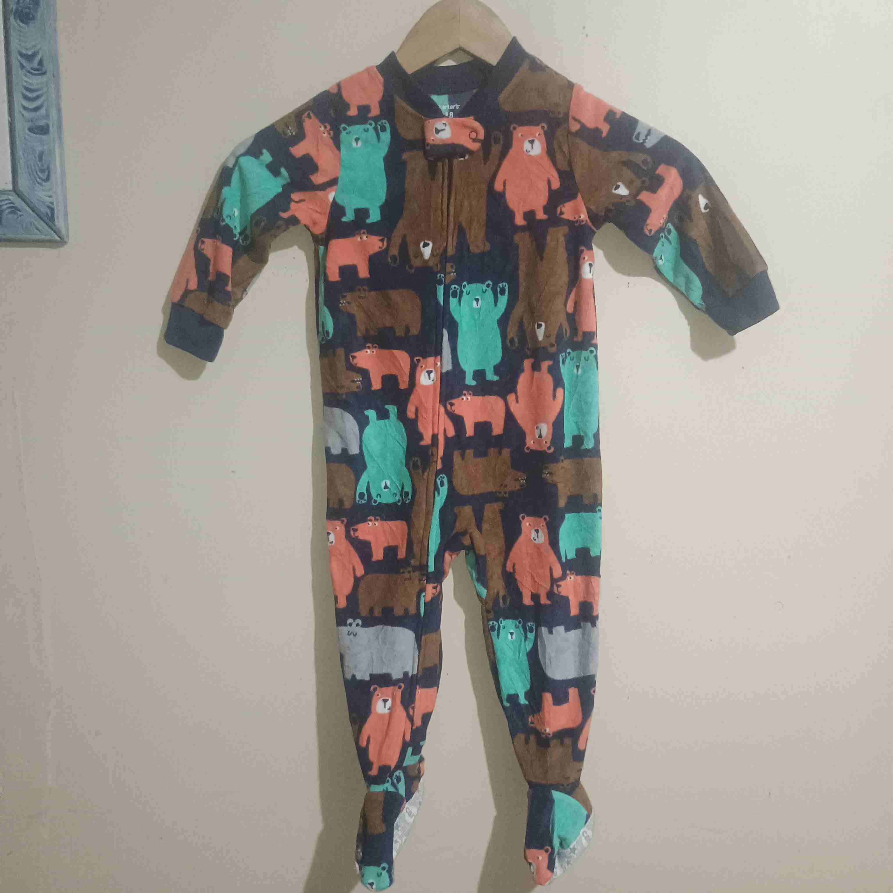 Pijama de polar con diseño de ositos coloridos. Ideal para noches frías. En buen estado. Talla 18 mese