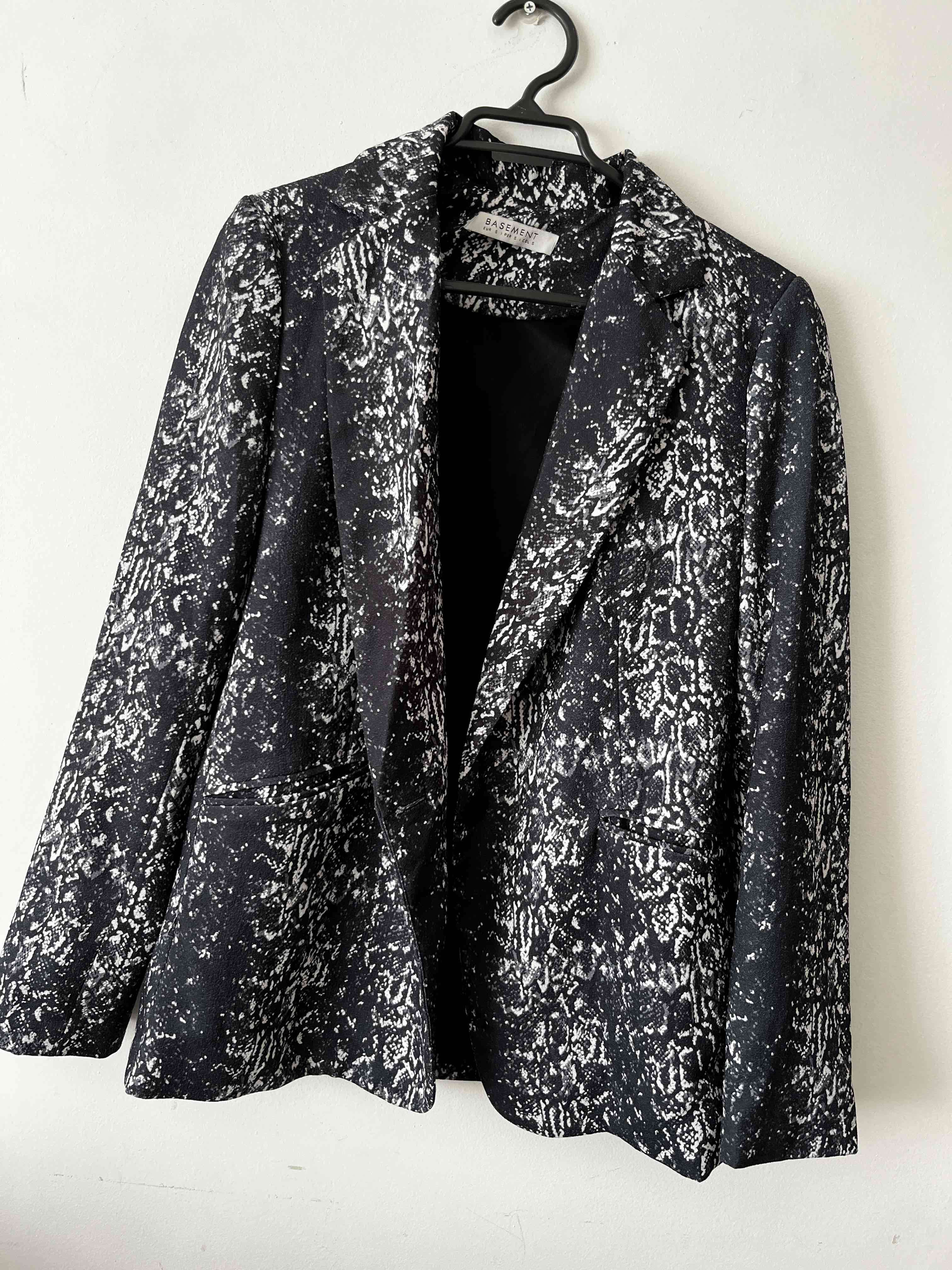 Blazer de mujer estilo elegante con estampado en tonos blancos y negros. Perfecto para ocasiones formales.