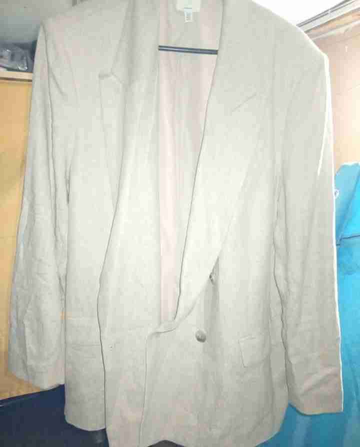 Blazer beige cómo nuevo. Ideal para ocasiones formales o trabajo. Estilo clásico y versátil. Utilizado una sola vez, original de H&M.