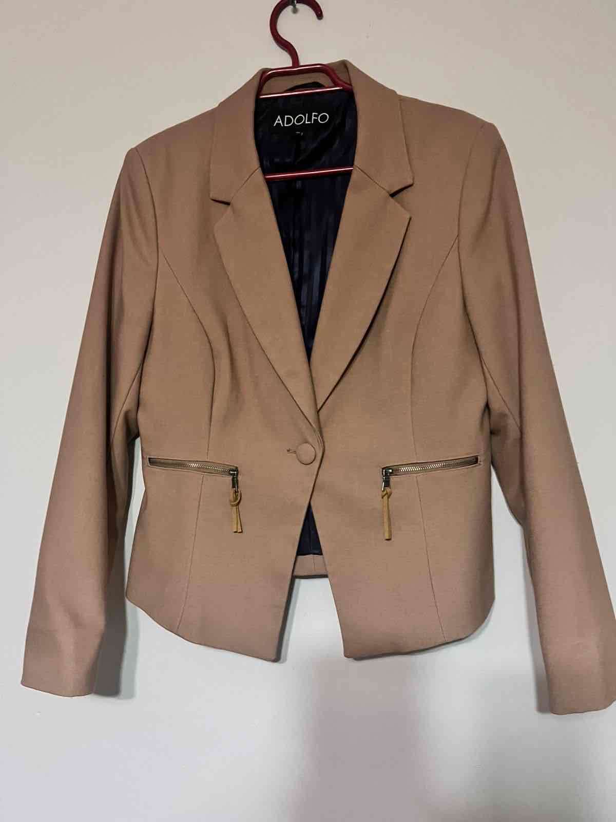 Elegante blazer cafe con cierre metálico. Ideal para ocasiones formales. En buen estado.