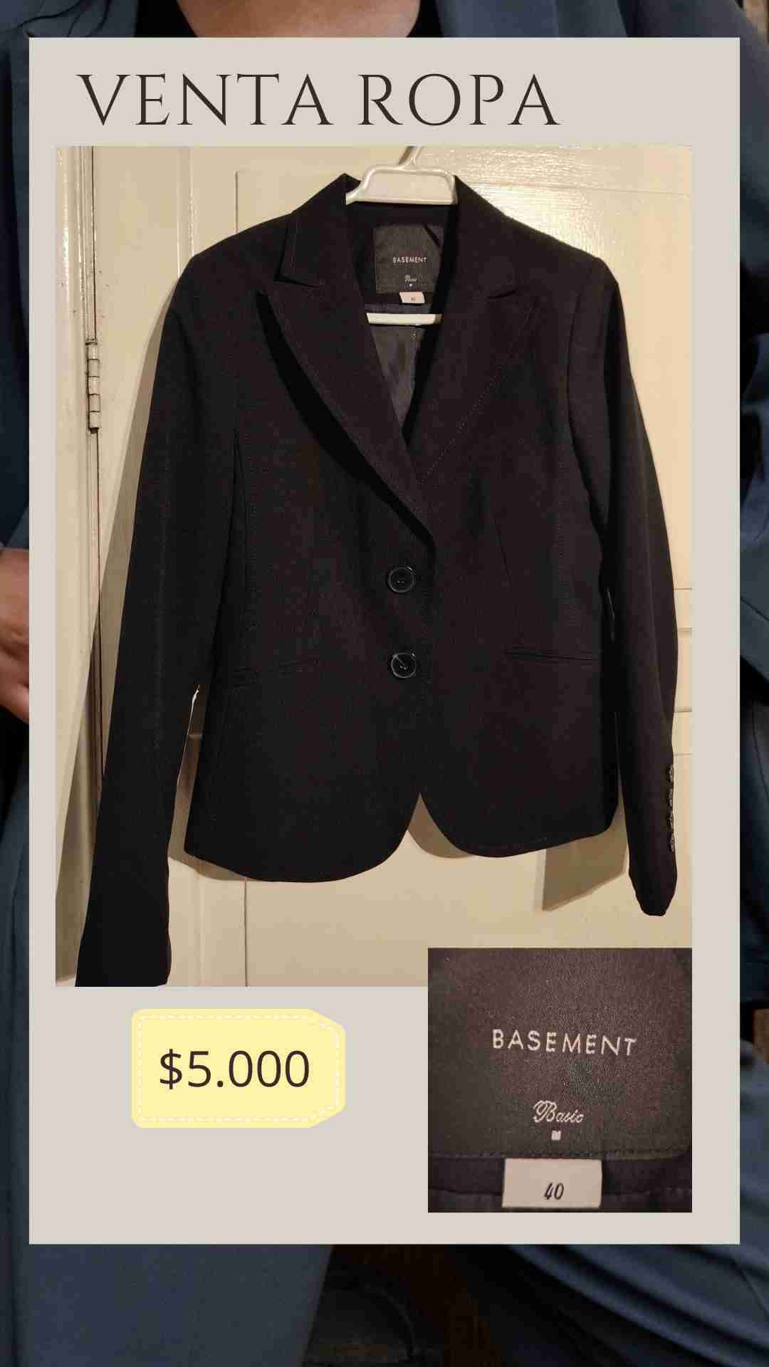Elegante blazer negro marca Basement, talla 40 ,perfecto para trabajar o eventos. En buen estado general.