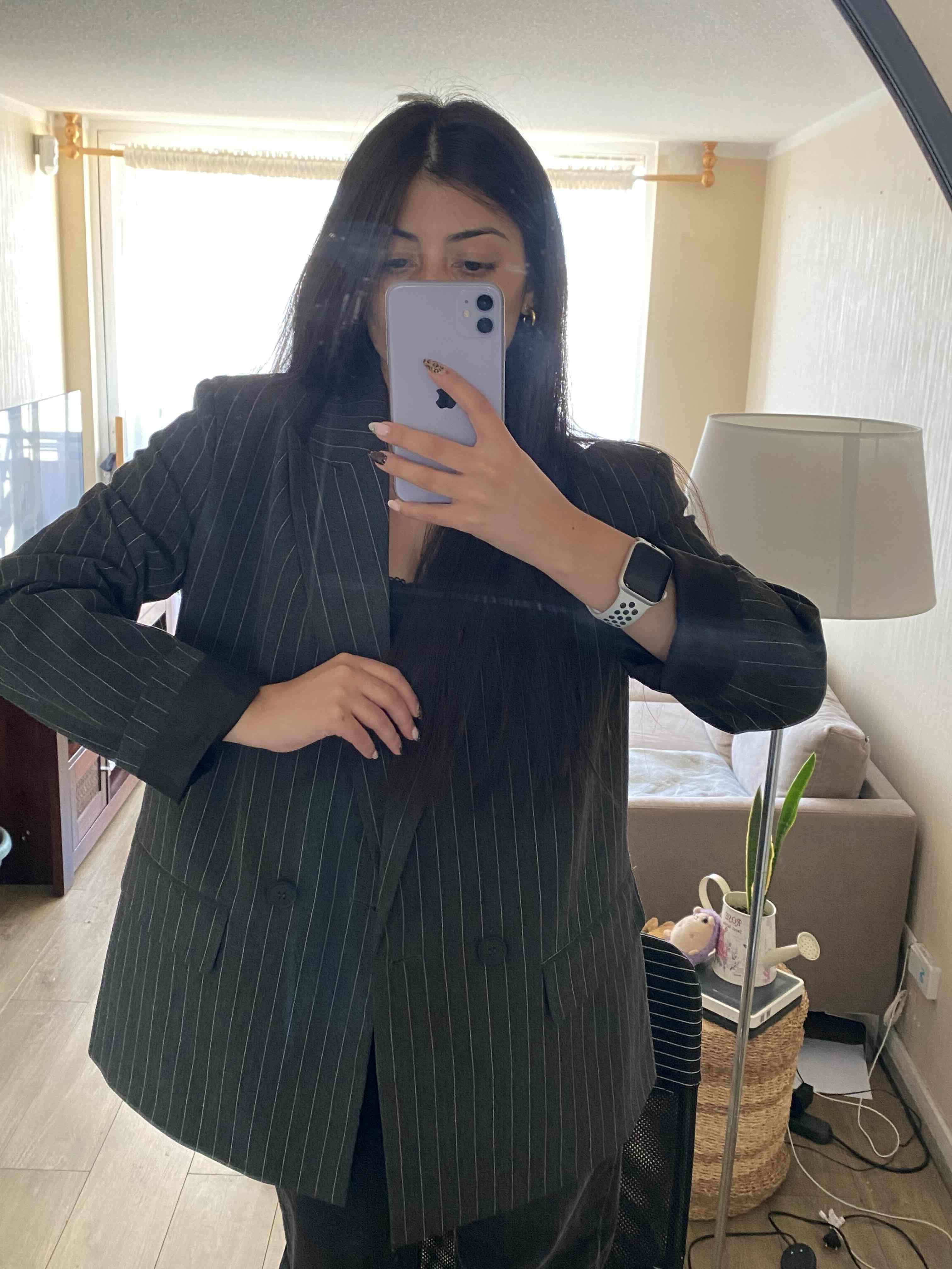 Blazer elegante negro con rayas blancas. Perfecto para ocasiones formales o laborales. Como nuevo .