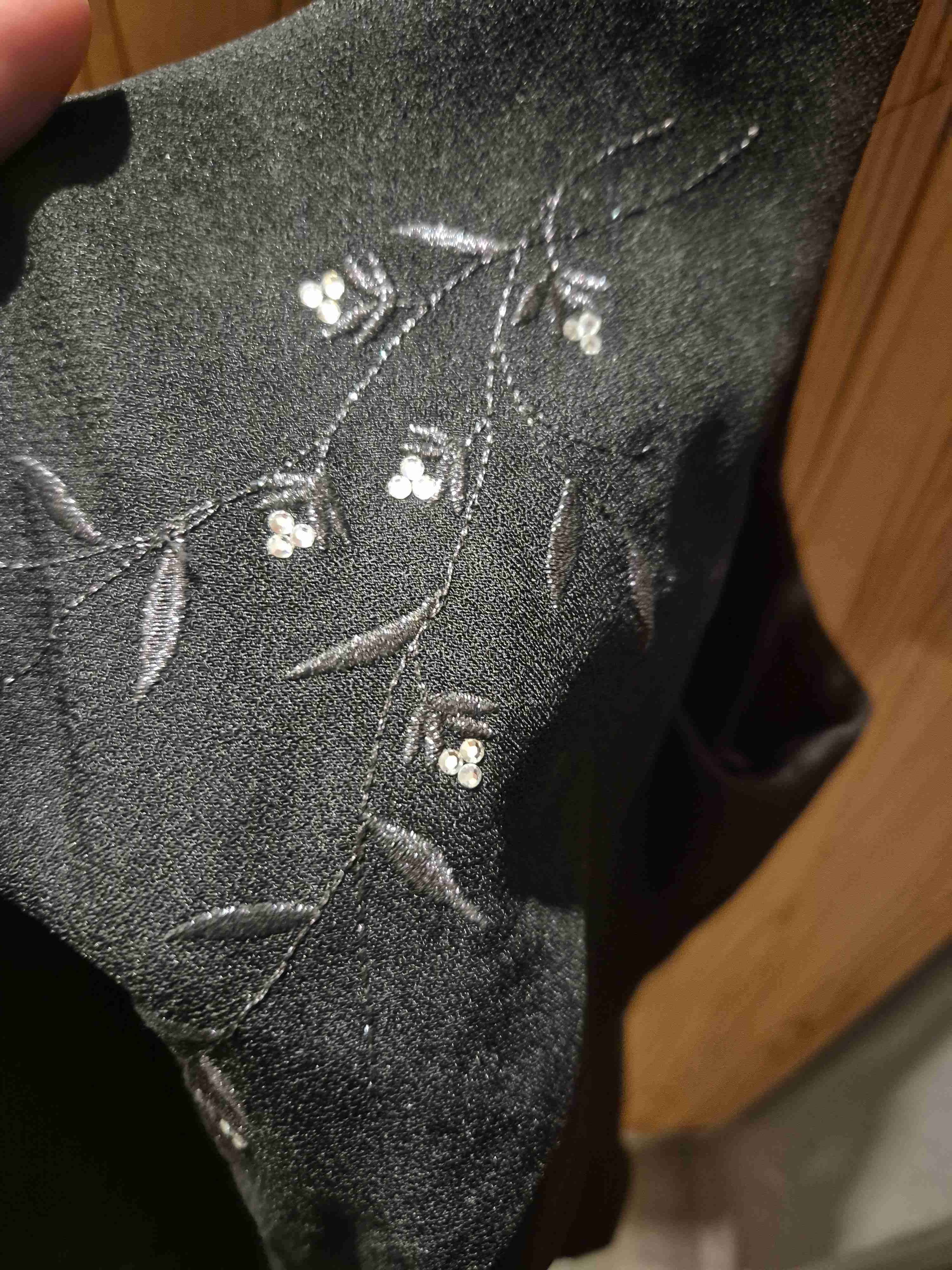 Blusa de color negro con bordados florales y detalles brillantes. Ideal para ocasiones formales. Nuevo.