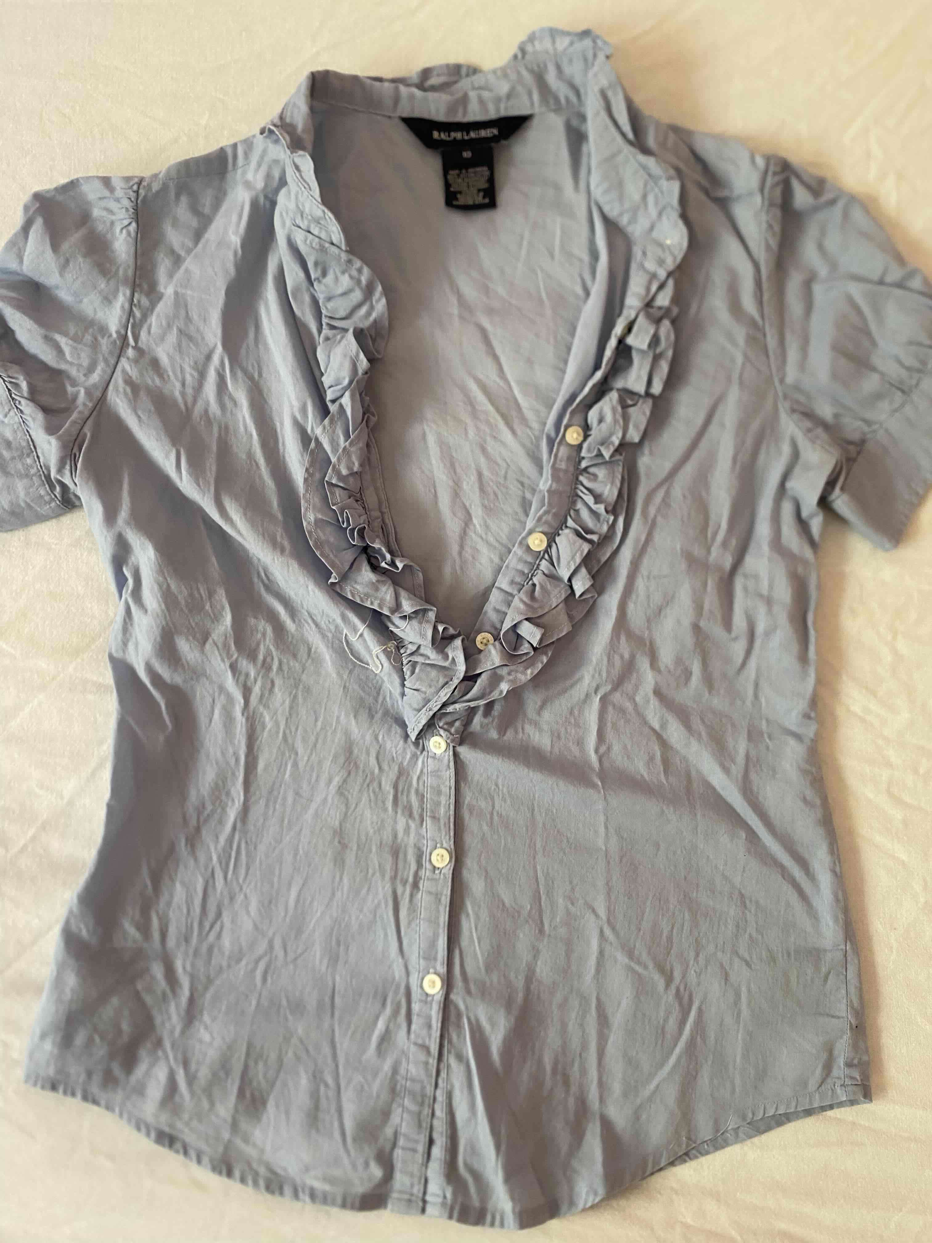Blusa celeste volantes Ralph Lauren