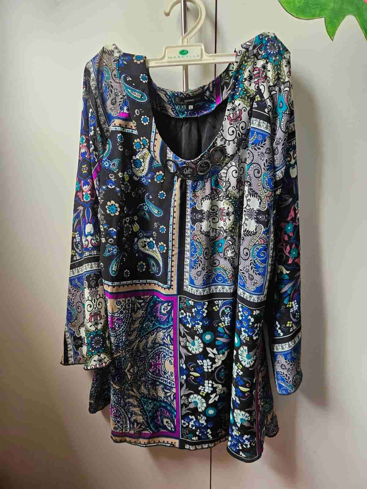 Blusa estilo bohemio con estampado floral multicolor. Perfecto para ocasiones casuales. Buen estado general.