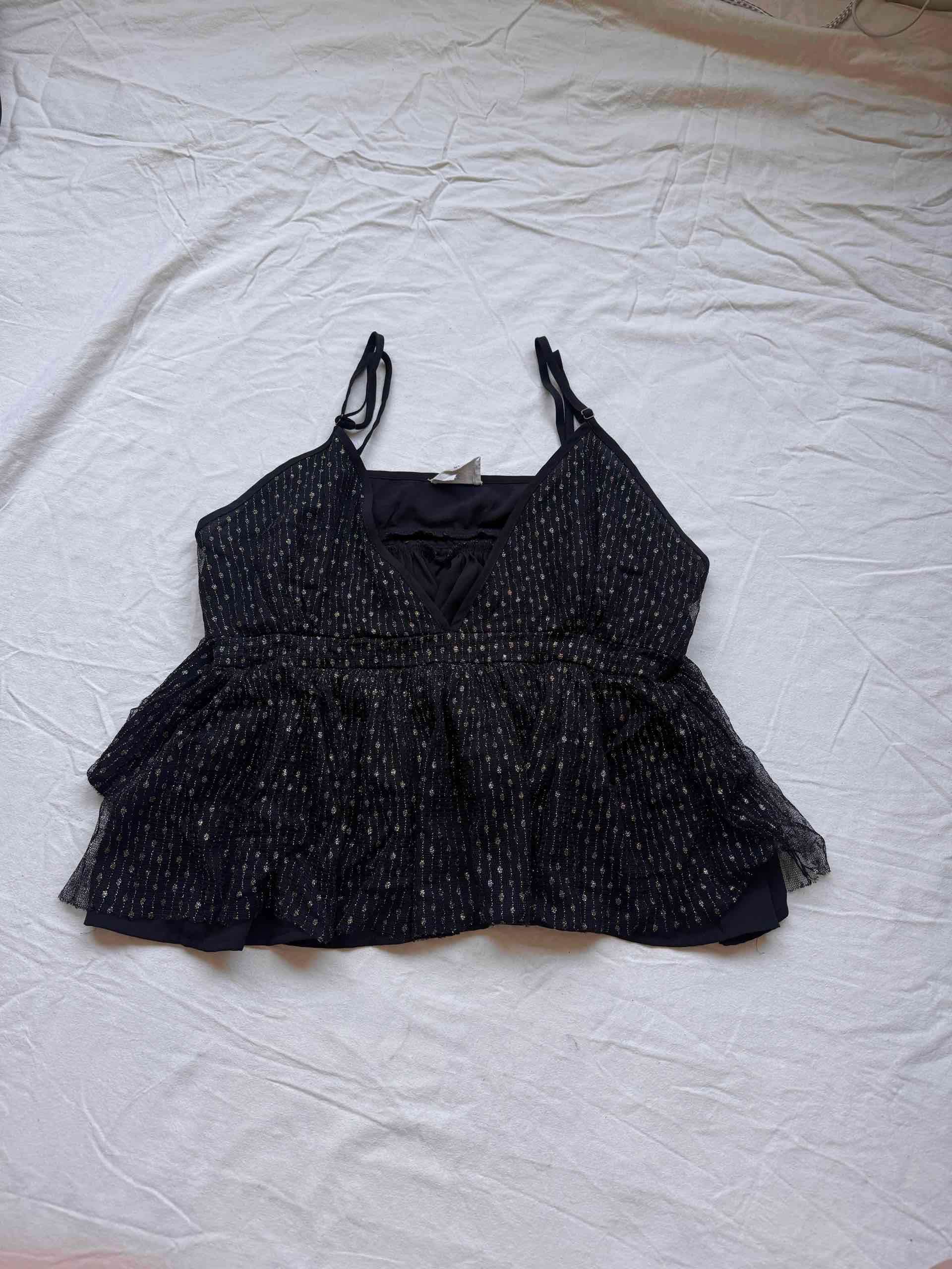 Blusa negra sin mangas con detalles brillantes. Ideal para fiestas. Buen estado.