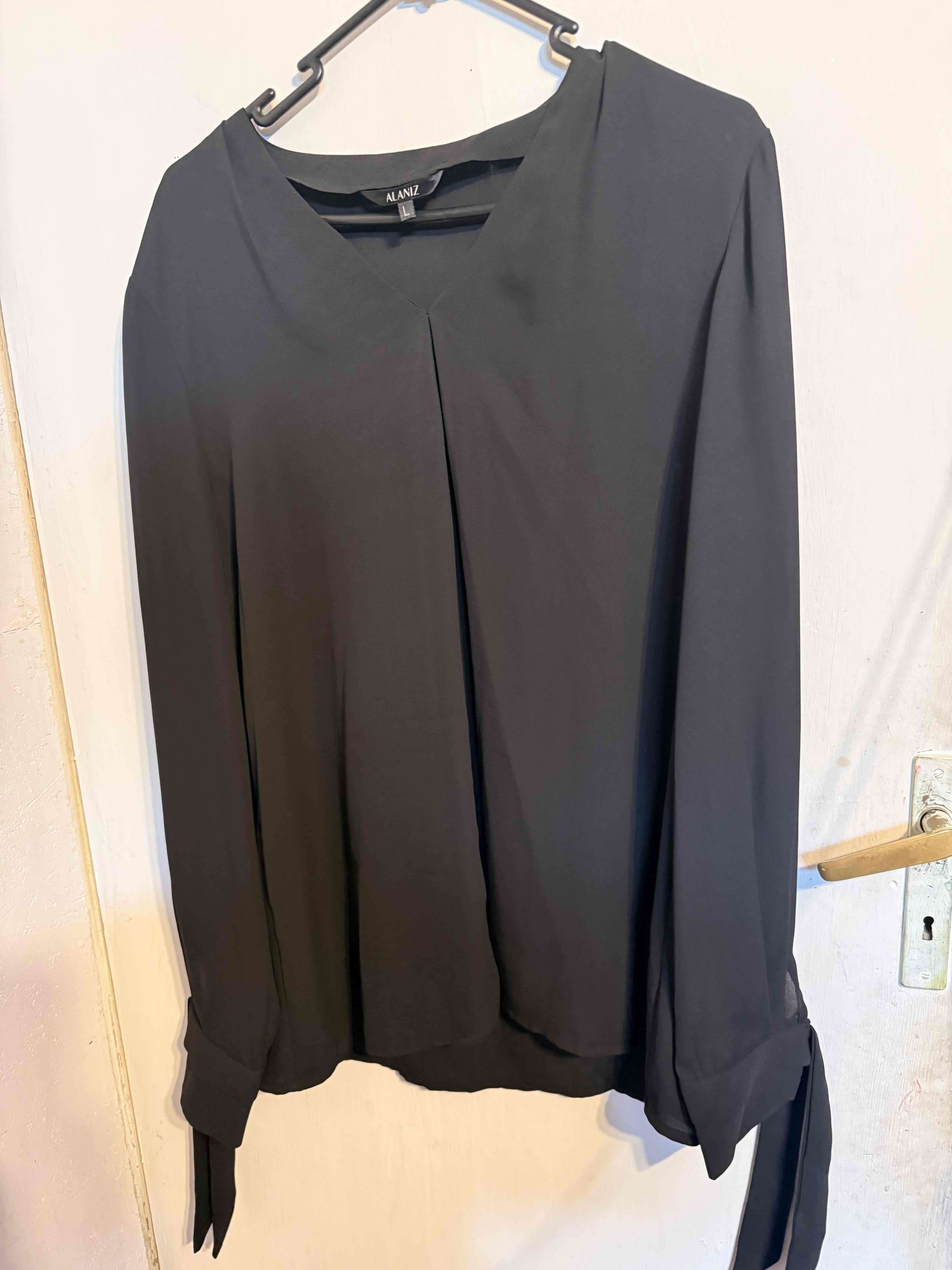 Blusa elegante negra, ideal para ocasiones formales o uso diario. En buen estado, con detalles en los puños. Manga larga. Alaniz