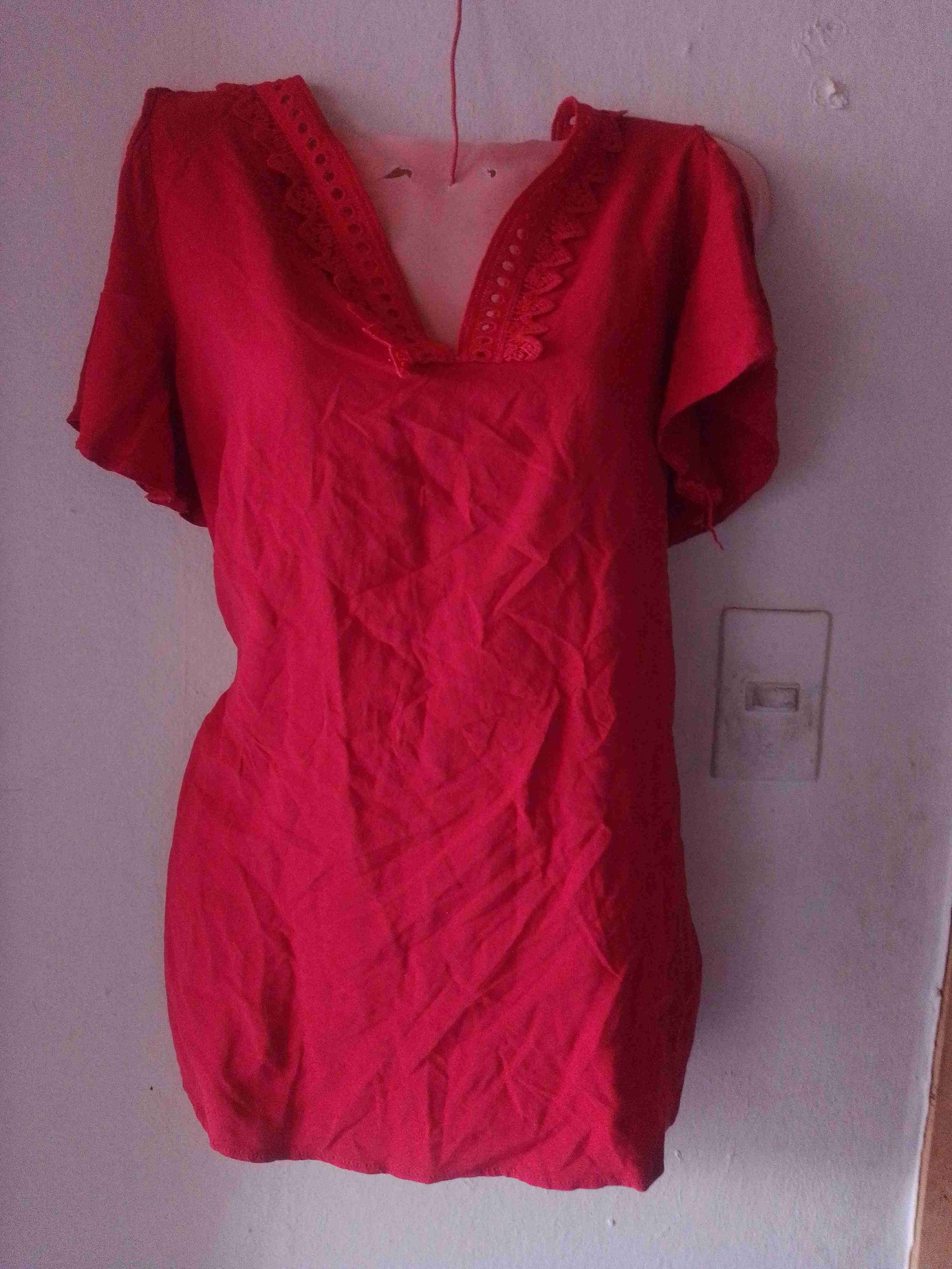 Blusa femenina de color rojo con detalles de encaje En buen estado general, ideal para ocasiones casuales.