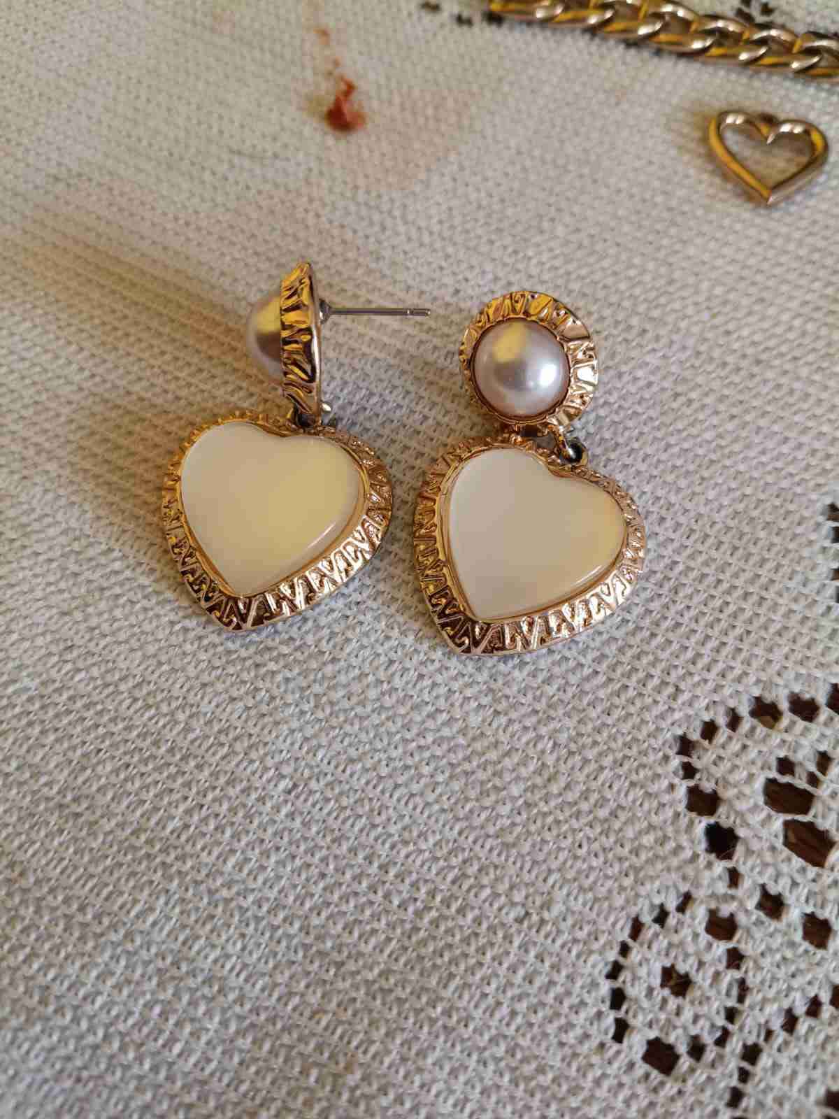 Hermosos aros con diseño de corazón y detalle dorado. Perfectos para ocasiones especiales.