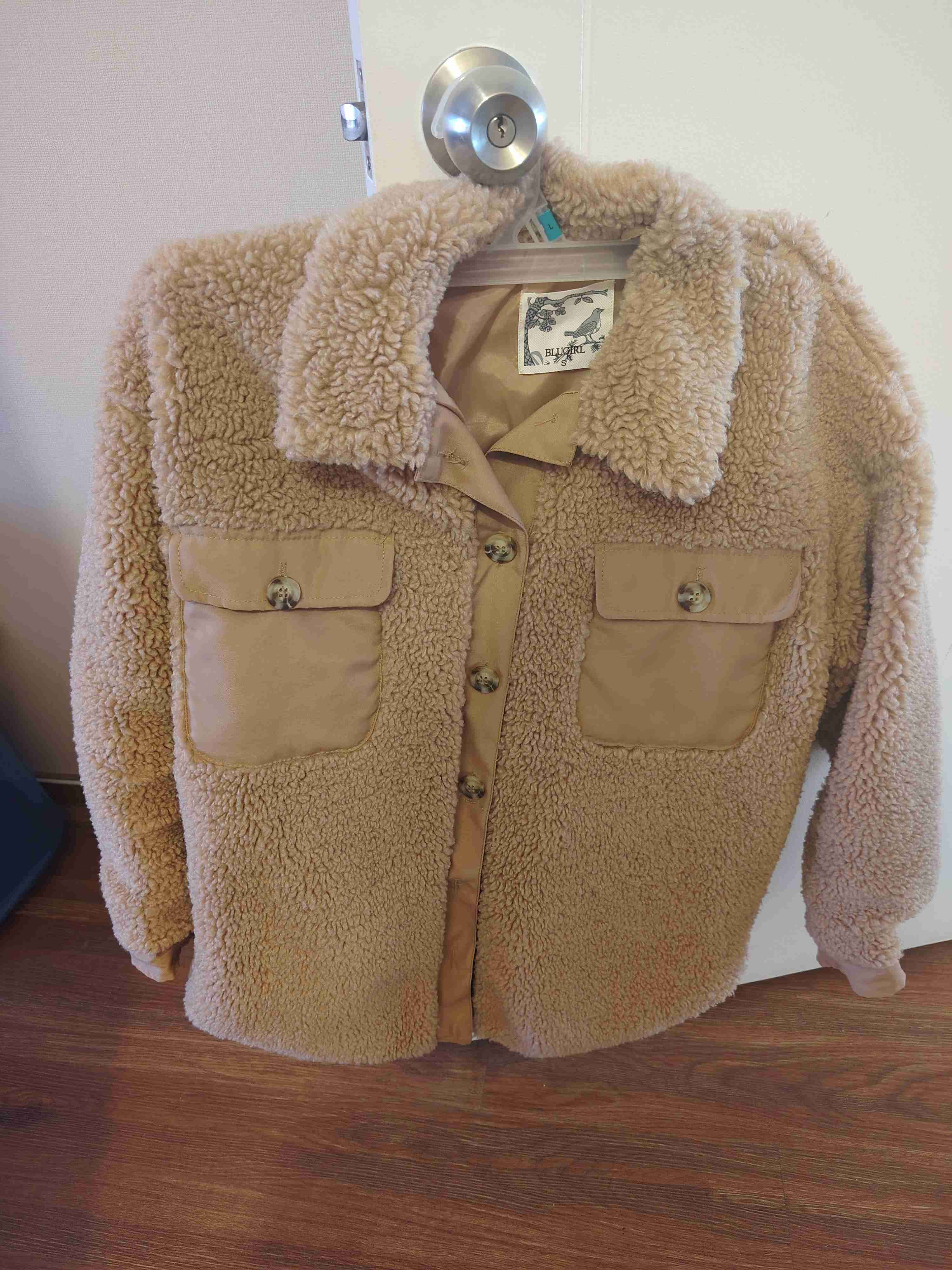Chaqueta de borrego en buen estado, ideal para días fríos. Bolsillos grandes y cierre con botones, cómoda y práctica.