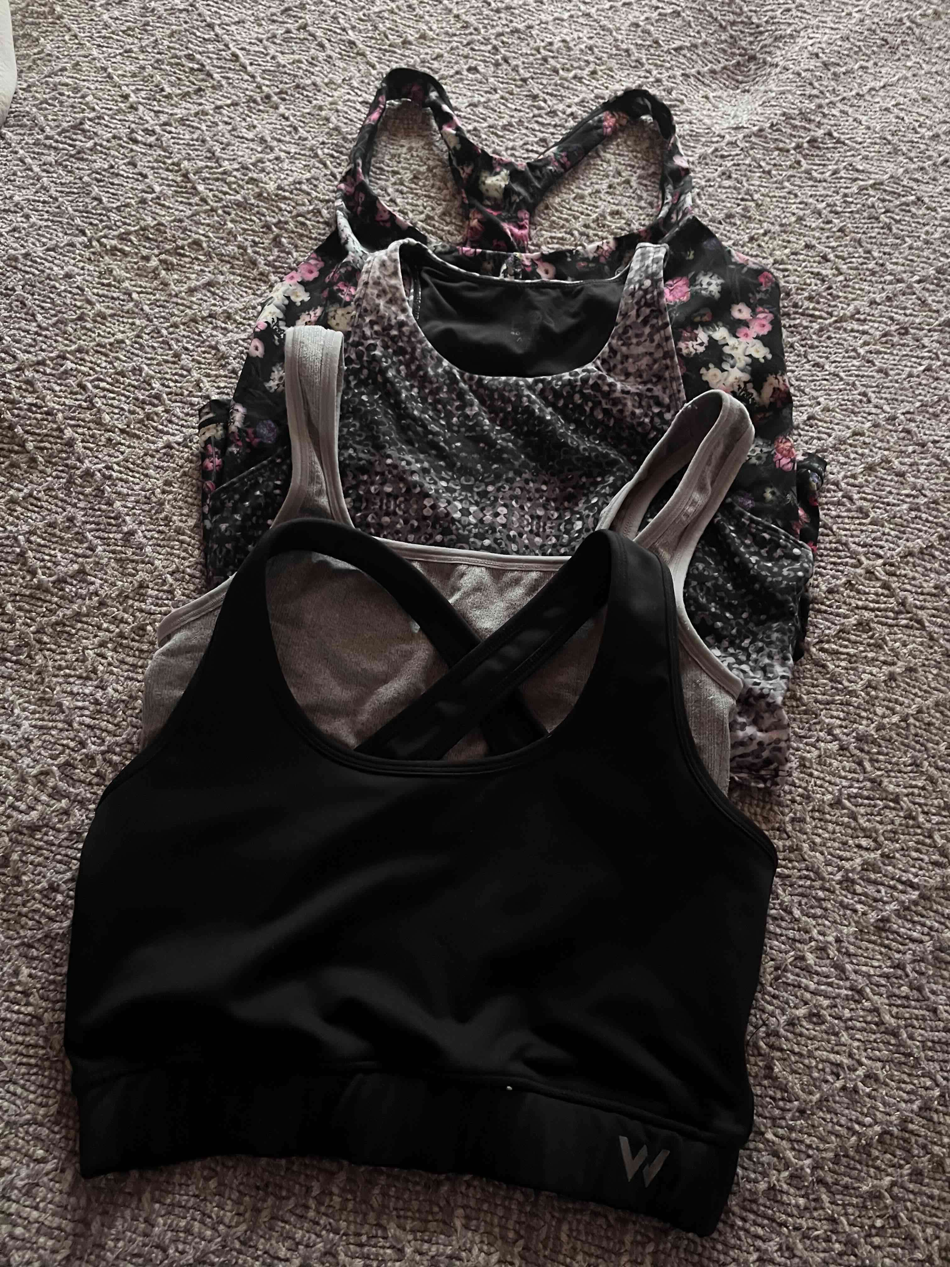 Cuatro top deportivos talla S, distintas marcas.