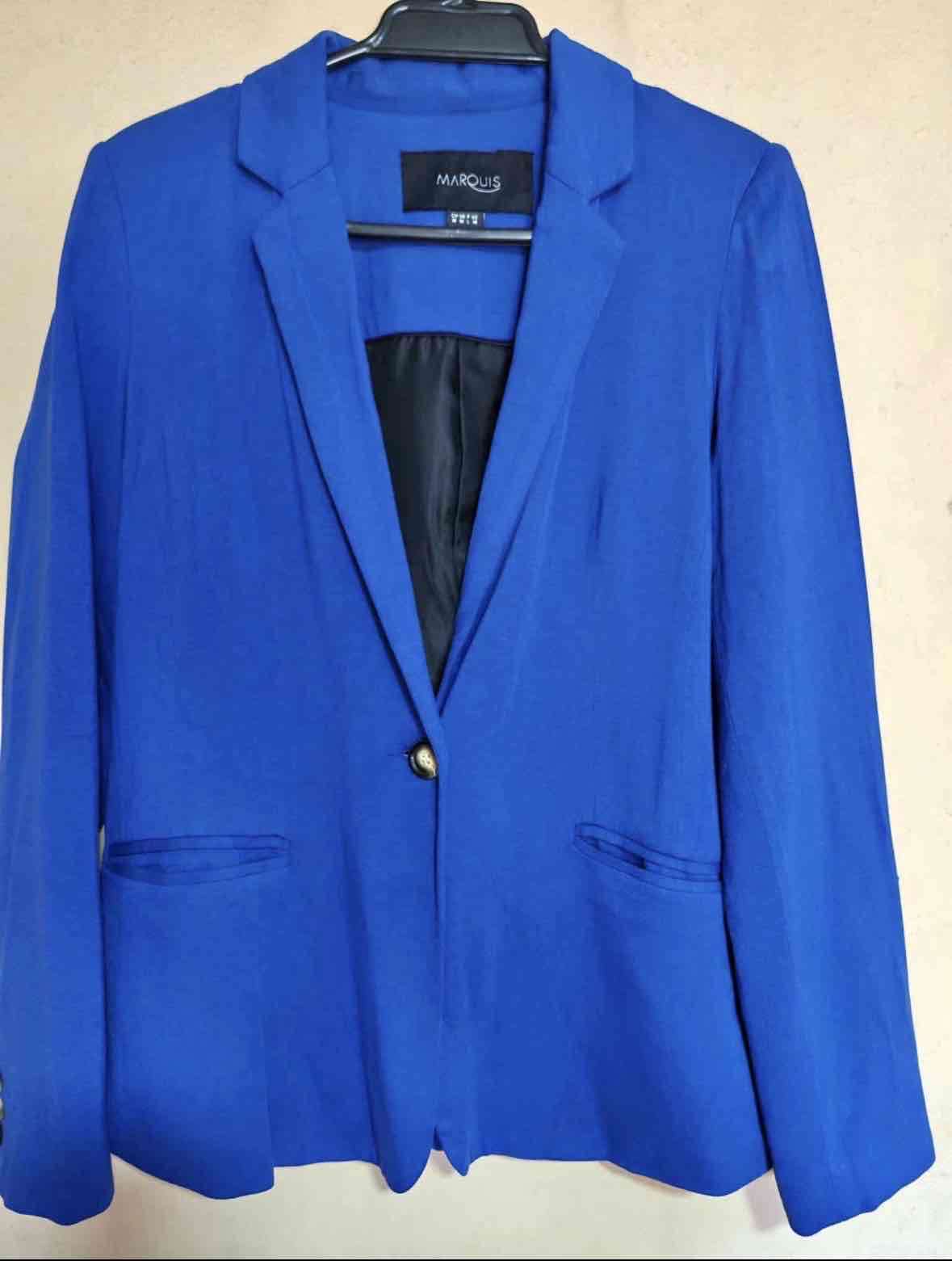 Elegante blazer azul para mujer, ideal para ocasiones formales. En buen estado y de material ligero.