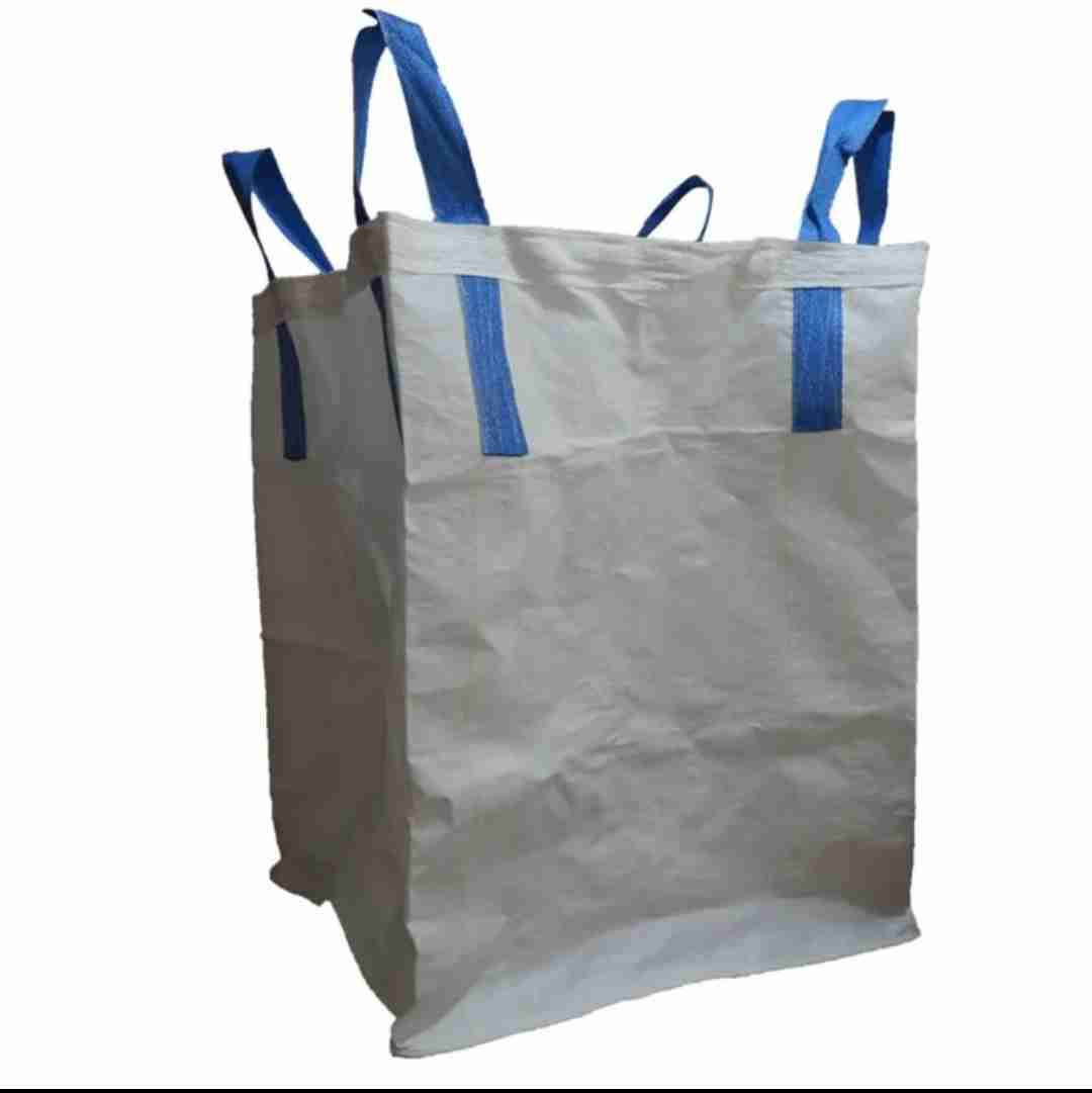 Bolsa de color blanco con asas azules, ideal para almacenar o transportar cosas en el hogar. Está Nuevo .
