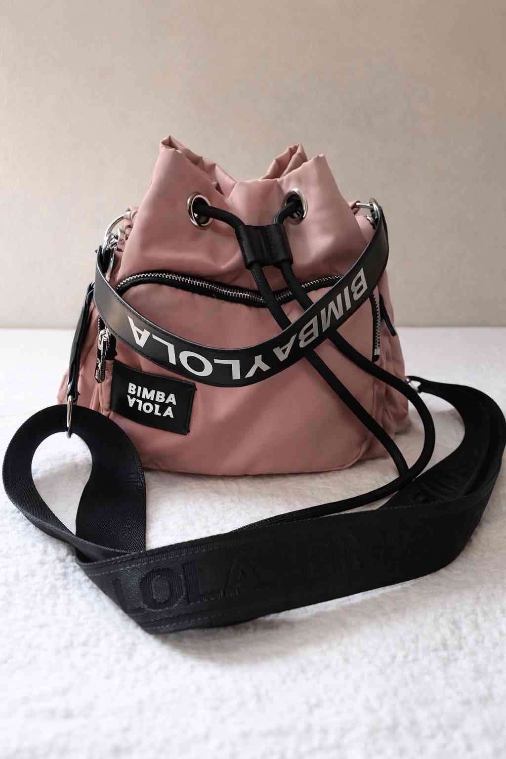 Bolso rosa de Bimba y Lola en buen estado, con correas negras ajustables y diseño moderno. Ideal para el uso diario.