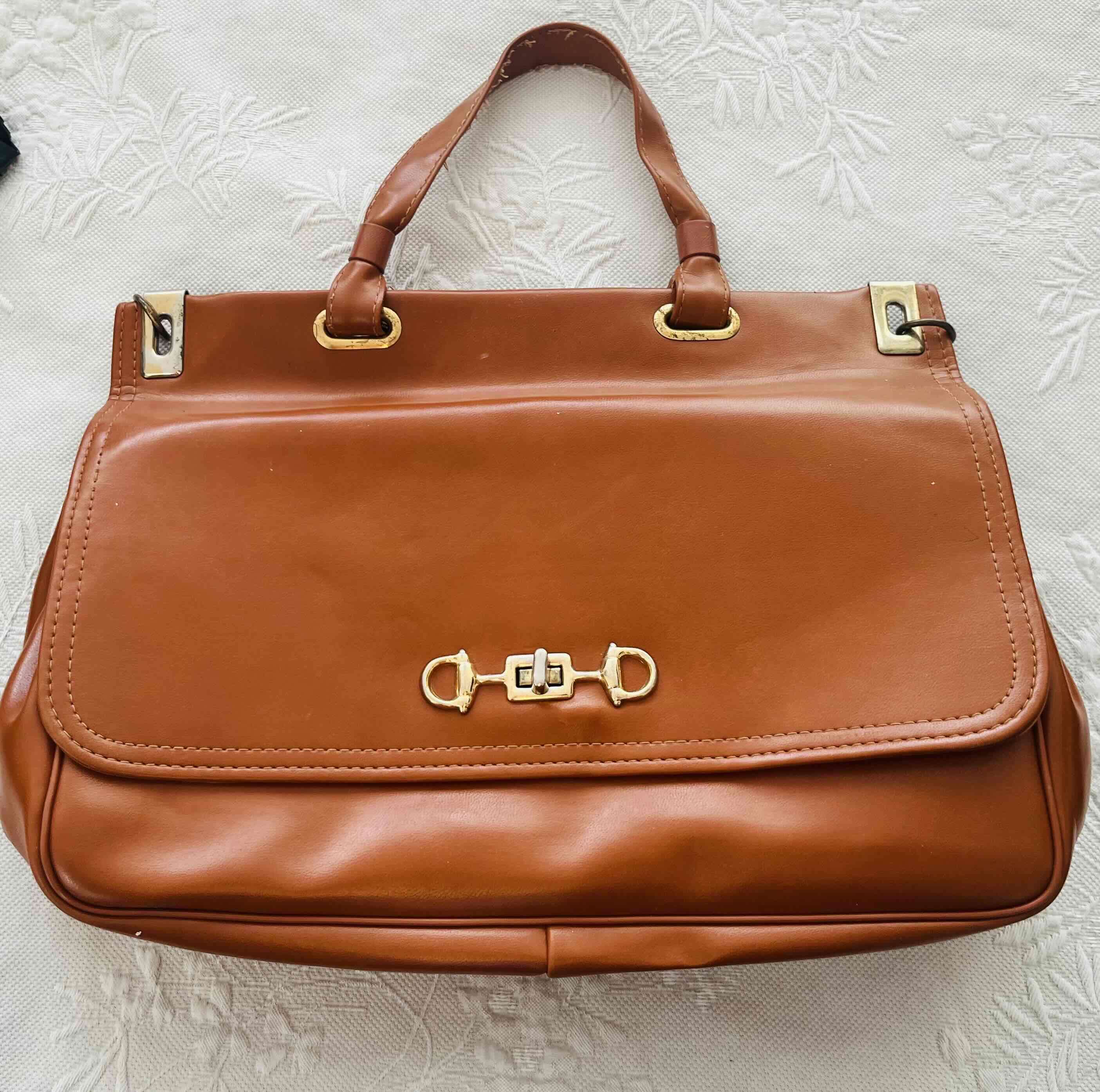 Elegante bolso de cuero marrón con detalle metálico. Tamaño L/XL. En buen estado, ideal para uso diario o eventos.