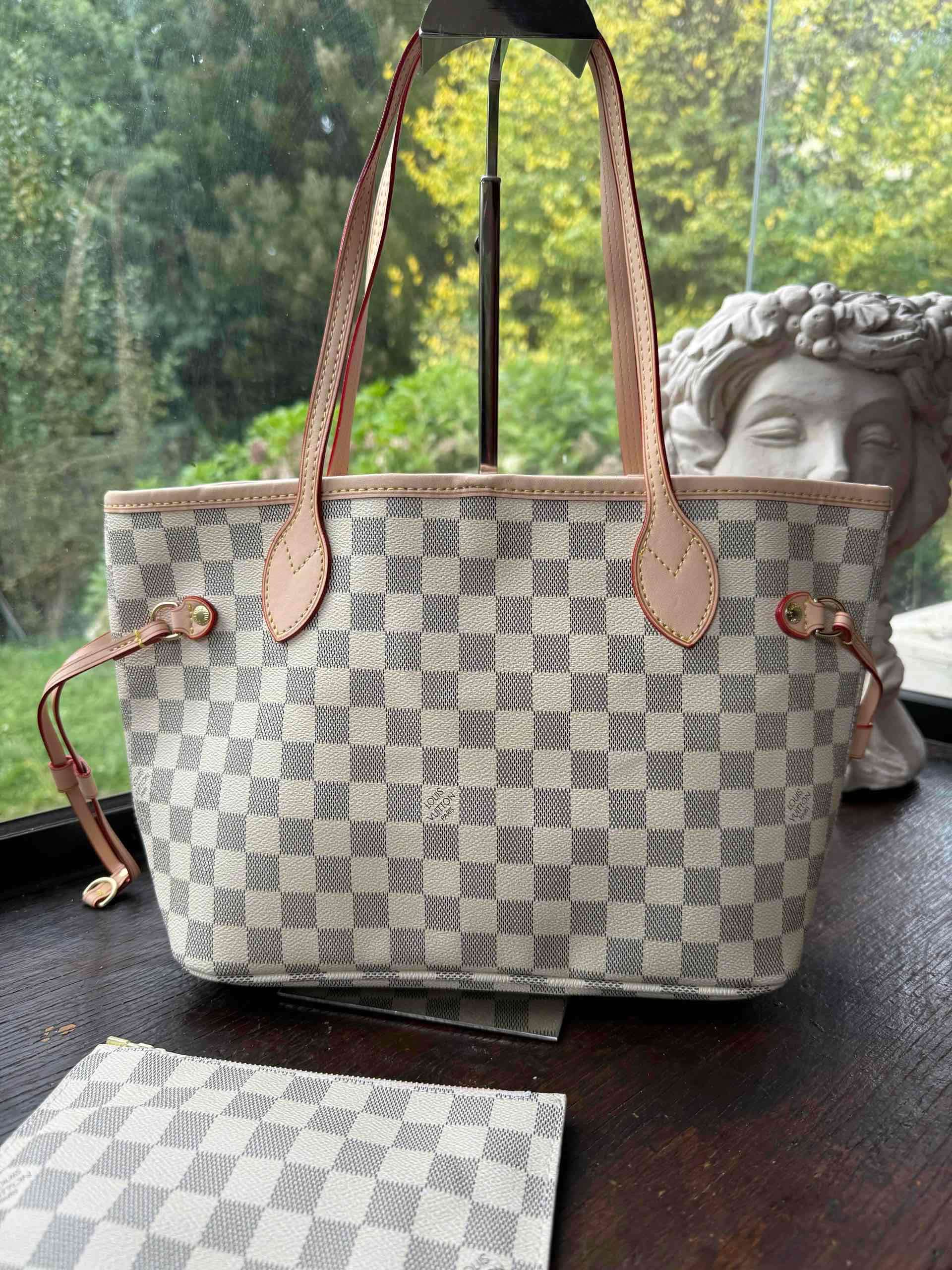 Bolso de mano Neverfull Damier Azur Pm size (28cm) Detalles en cuero Repli