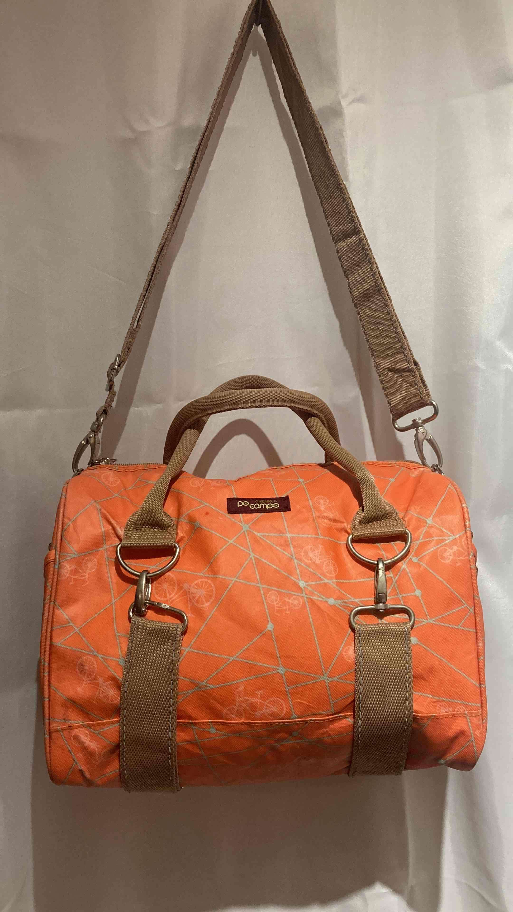 Bolso lonchera versátil anaranjado moderno. Ideal para uso diario o viajes cortos. Buen estado.