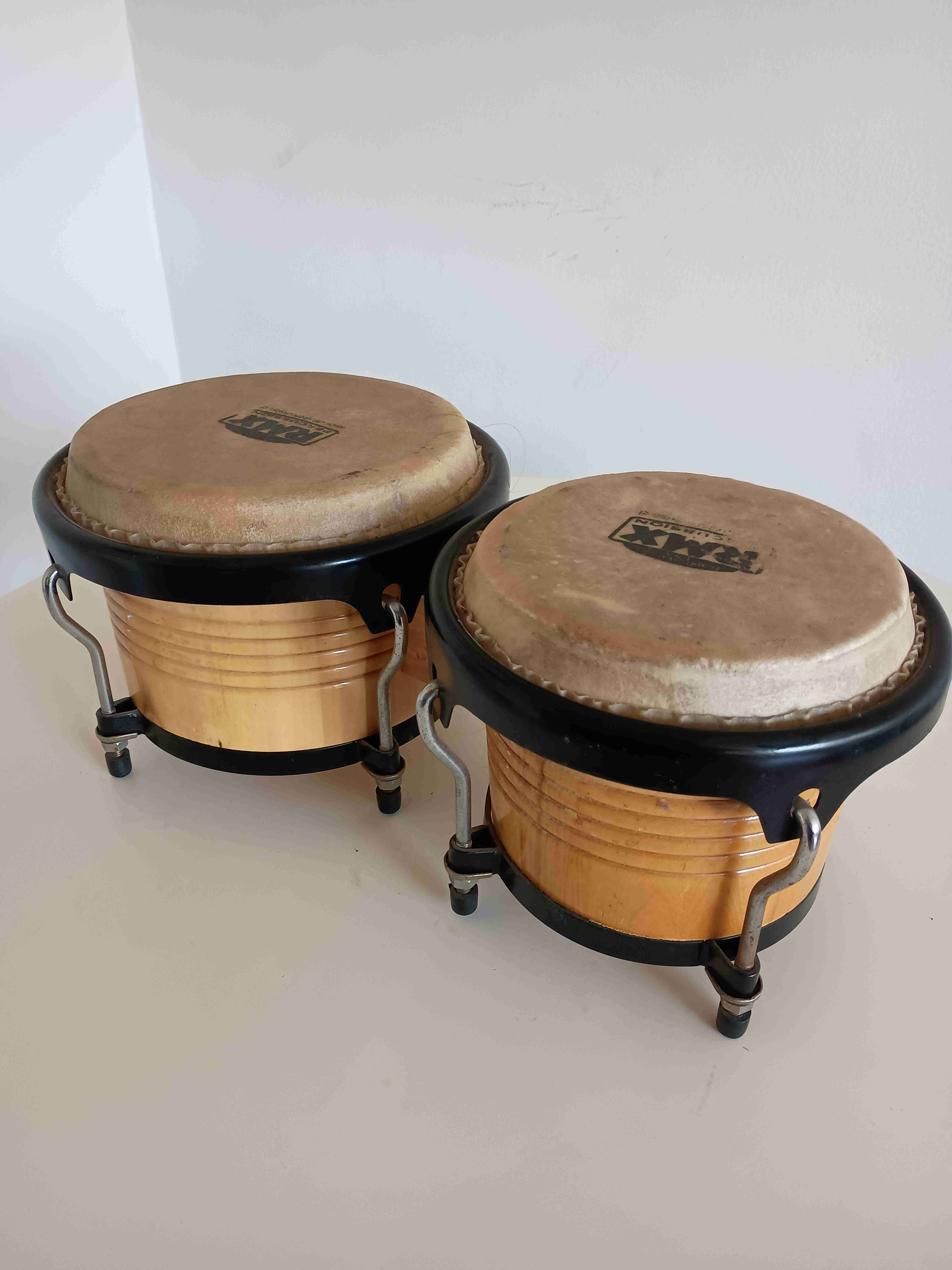 Bongós marca RMX Percussion. Son perfectos para quienes buscan un instrumento confiable, con buen sonido y duradero. Están muy bien cuidados. Marca: RMX Percussion. Material: Madera seleccionada con herrajes metálicos reforzados y cuero. Estado: 10/10 (Sin golpes en la madera, parches en perfecto estado). Ajuste: Sistema de tensión por pernos (fácil de mantener). Importante: Se entregan con su llave de ajuste original. Están listos para llegar y tocar, sin necesidad de cambiarles nada. Uso ideal: Práctica en casa, aprendizaje o sesiones acústicas.