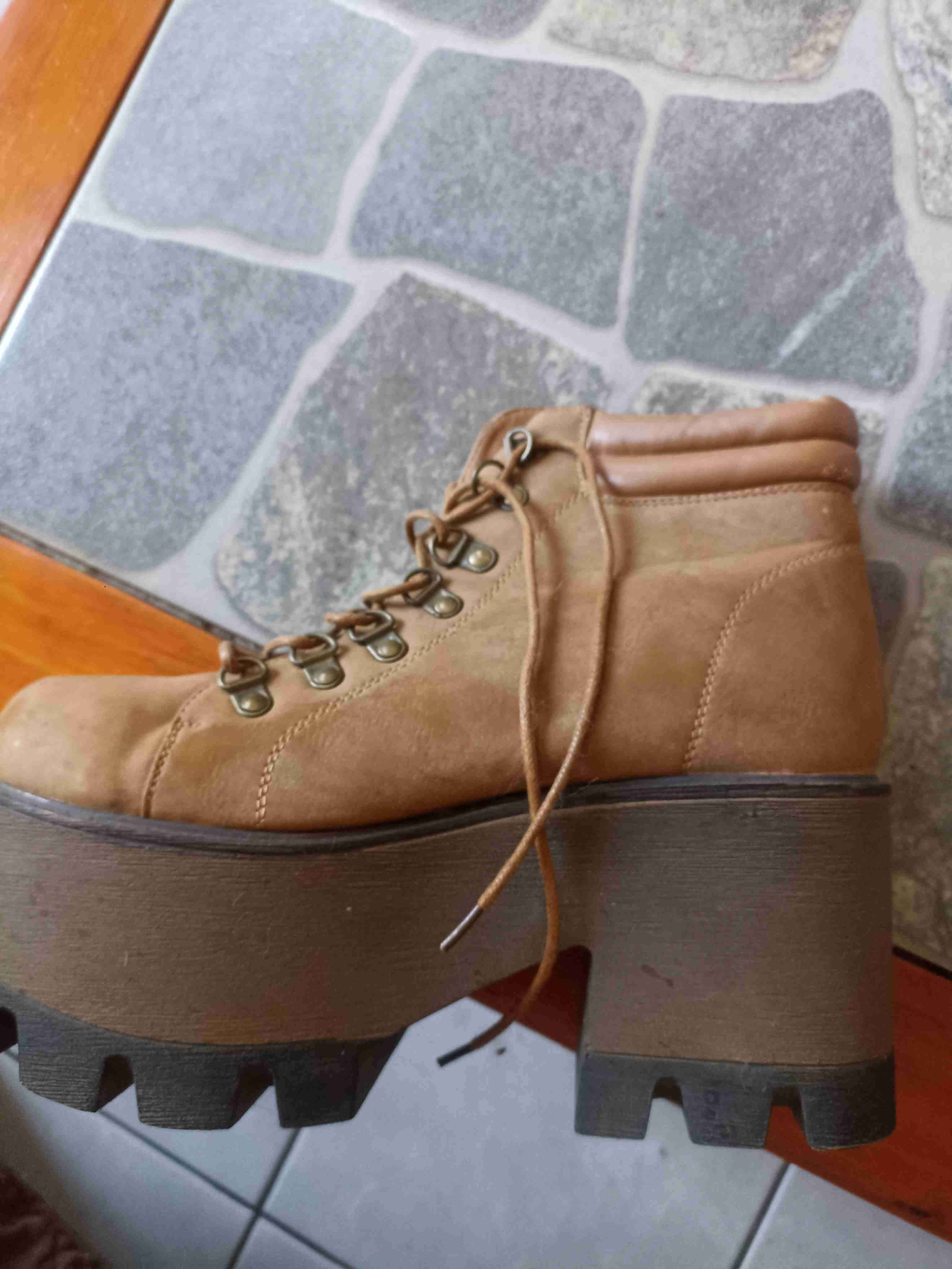Botín de mujer color marrón con plataforma y cordones en buen estado también botín negro Ideal para un look casual y estiloso.