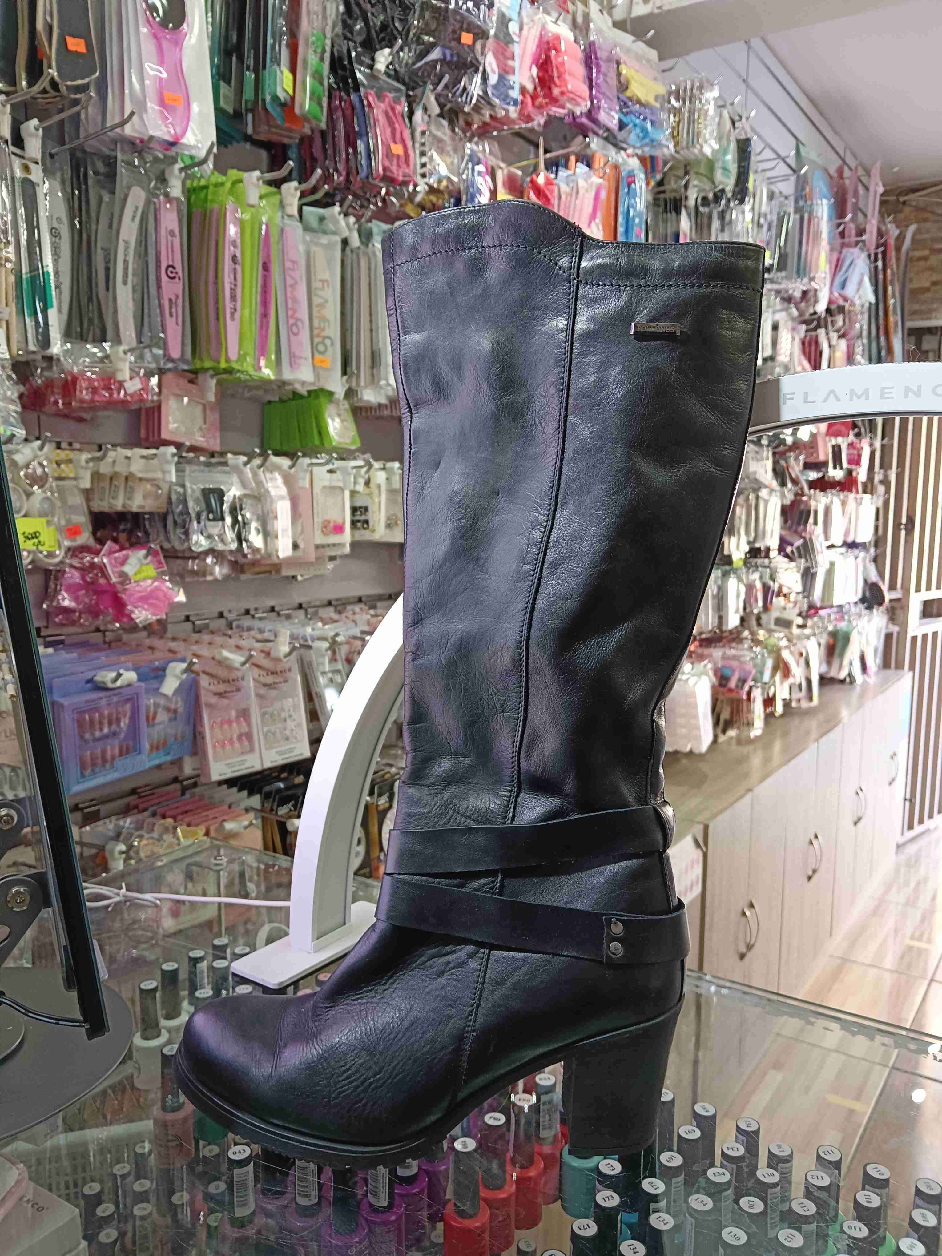 Bota negra de cuero con tacón( nueva)