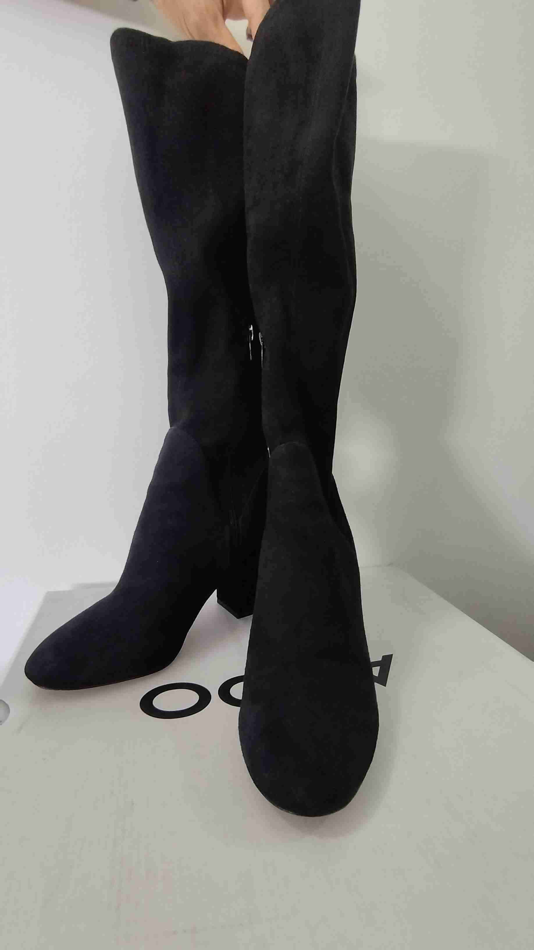 Botas altas de color negro, perfectas para un look elegante y sofisticado. Están en buen estado, ideales para usar con faldas o vestidos en invierno. Taco de 7cm Material de Gamuza