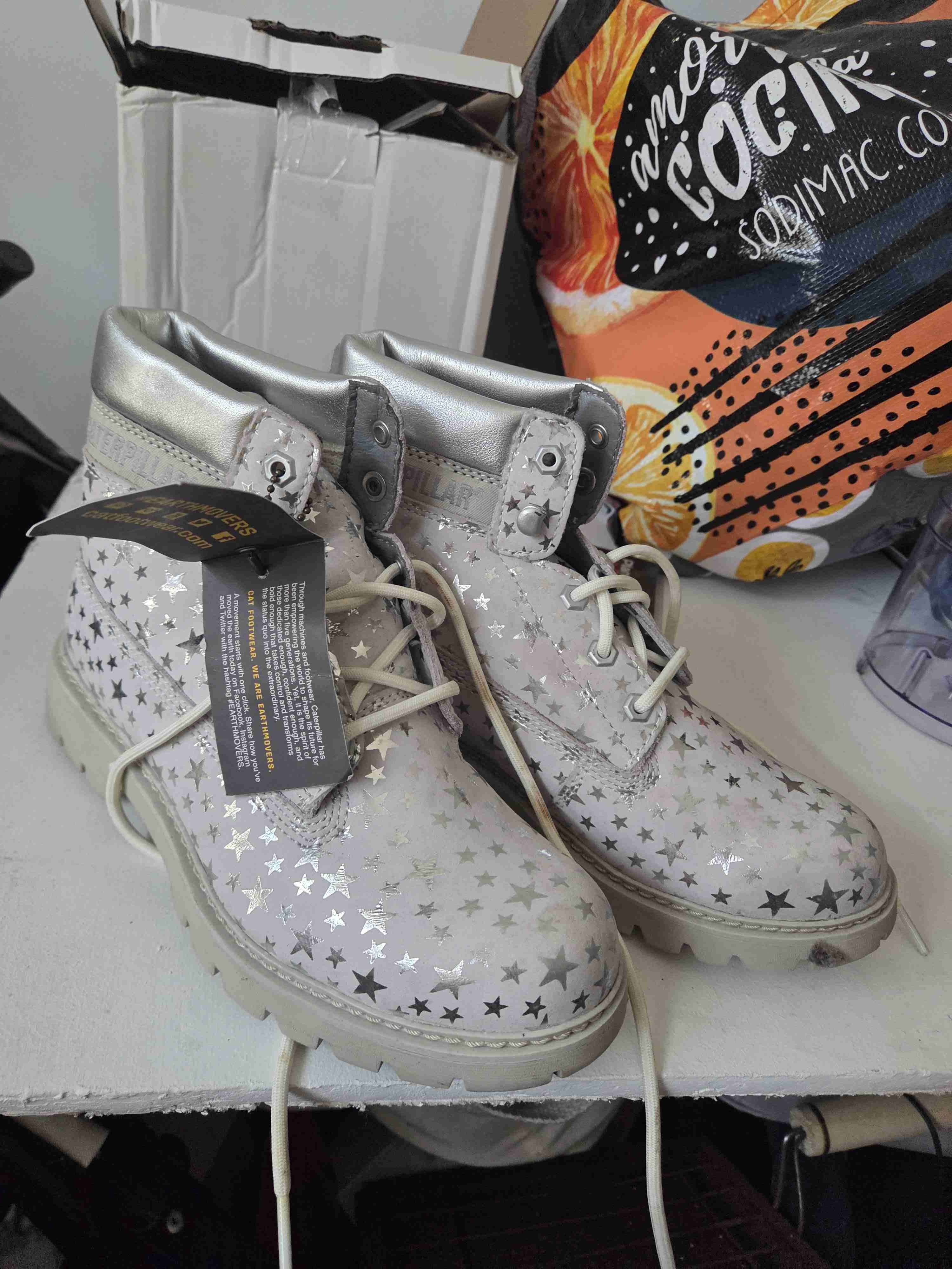 Botas blancas decoradas con estrellas plateadas y cordones blancos. Buen estado, ideales para un look casual. Nuevas sin uso talla 38