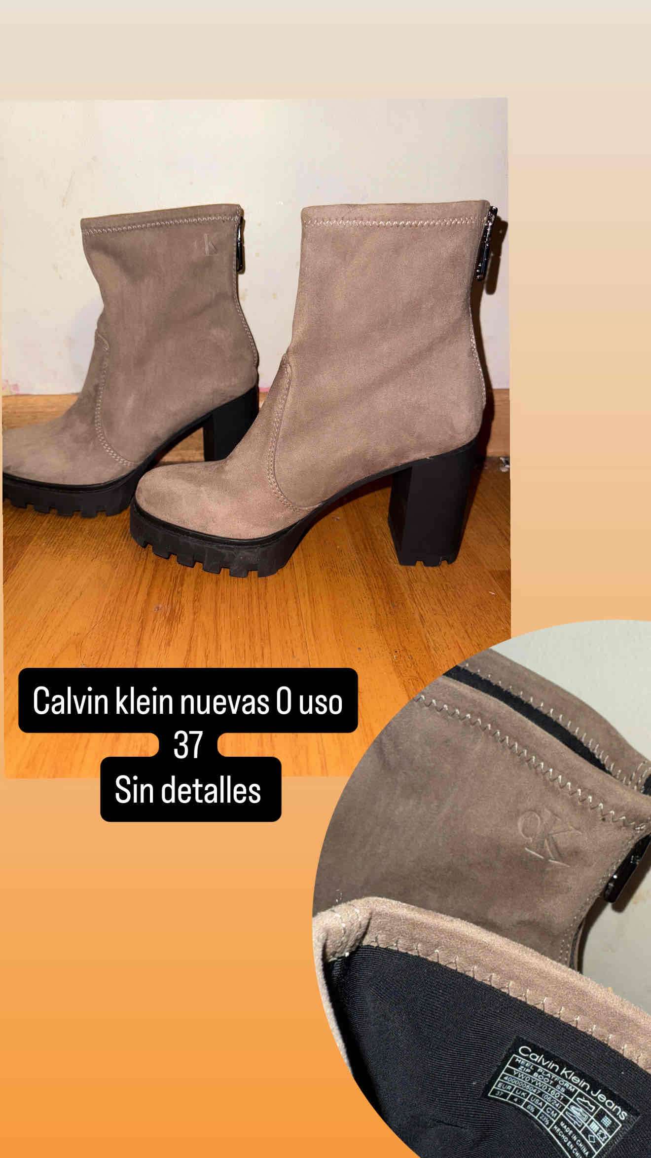Botas de mujer Calvin Klein, color camel y tacón alto. Sin uso y en perfecto estado. Valor referencial 189.990