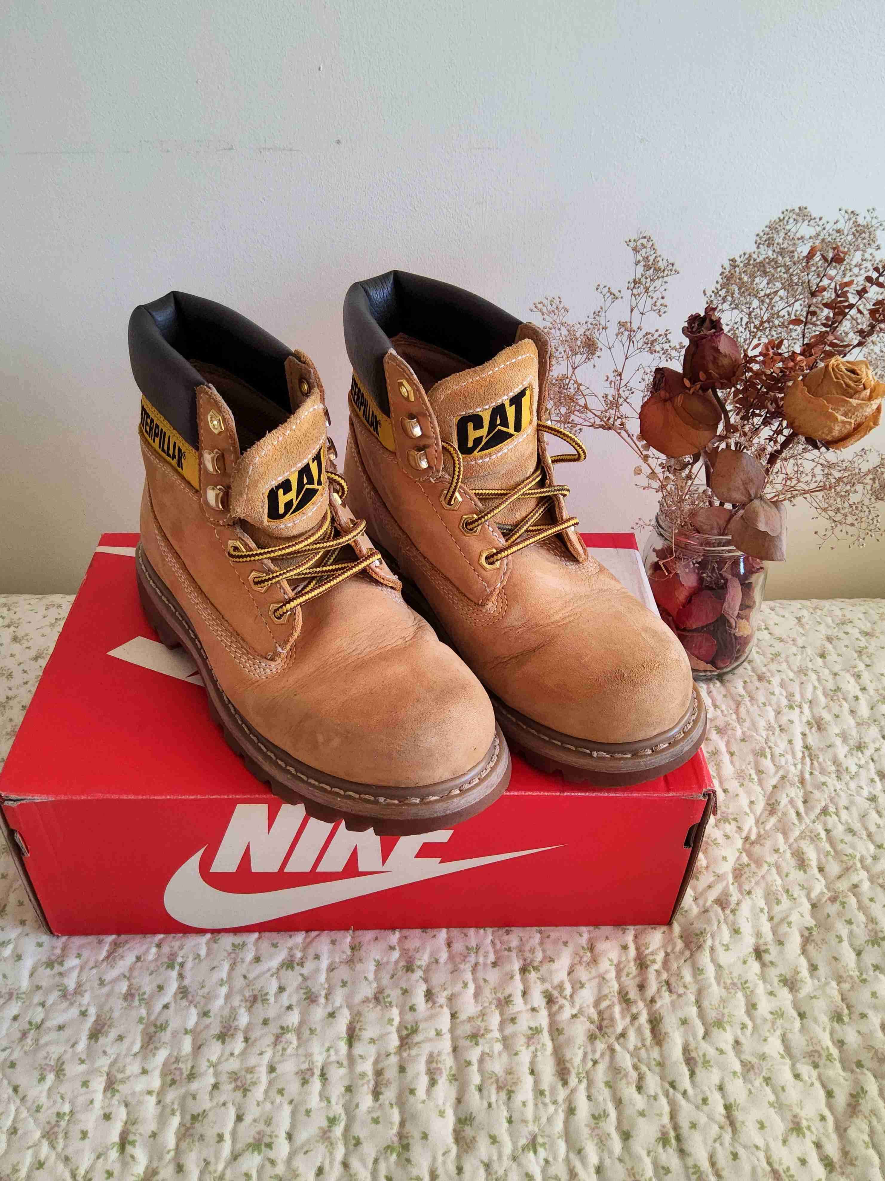 Botas CAT en buen estado, ideales para trabajo o uso casual. Color beige clásico, algunos signos de uso.