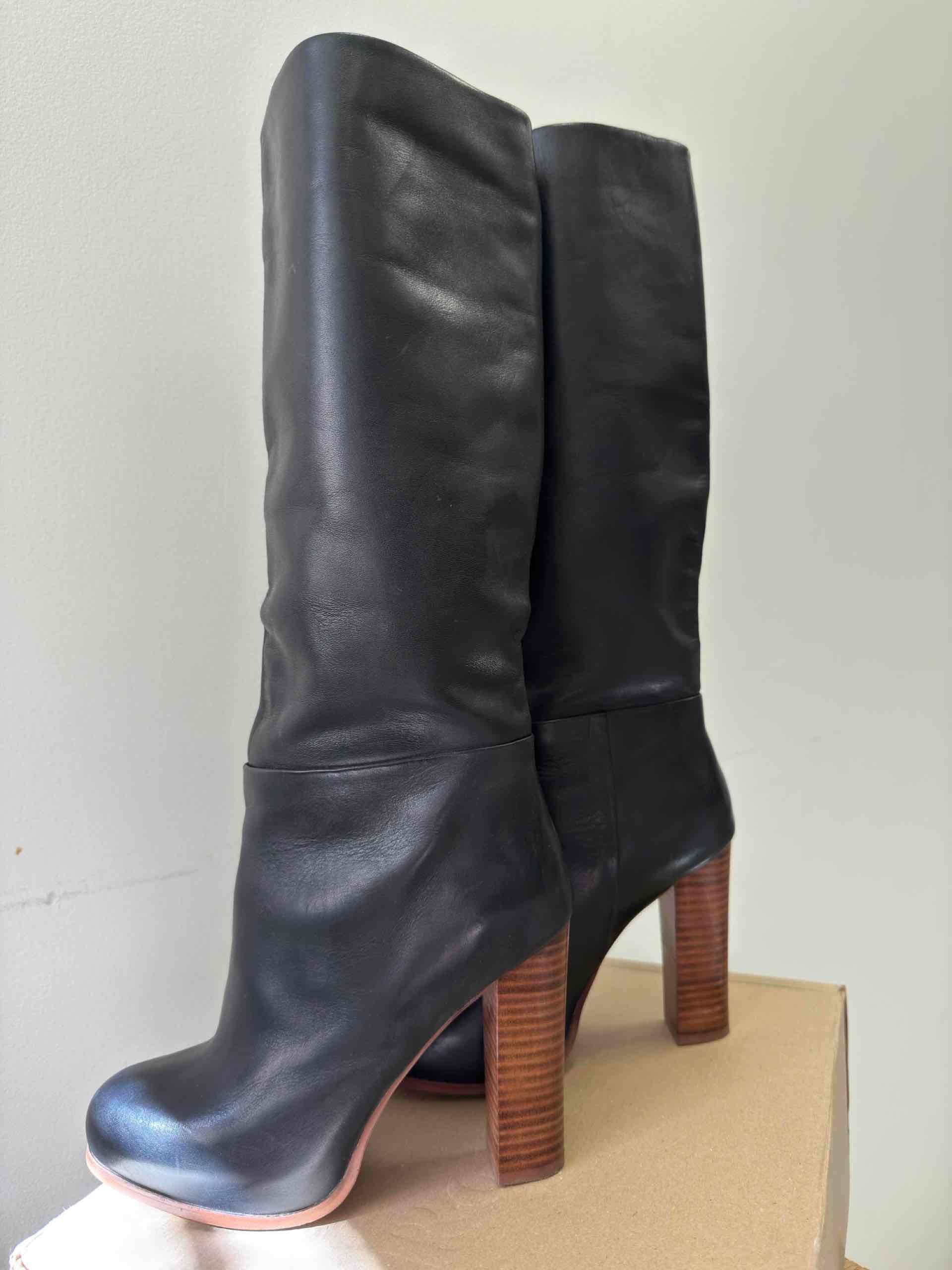 Elegantes botas de cuero negras, perfectas para un look otoñal. En buen estado, altura media de caña.