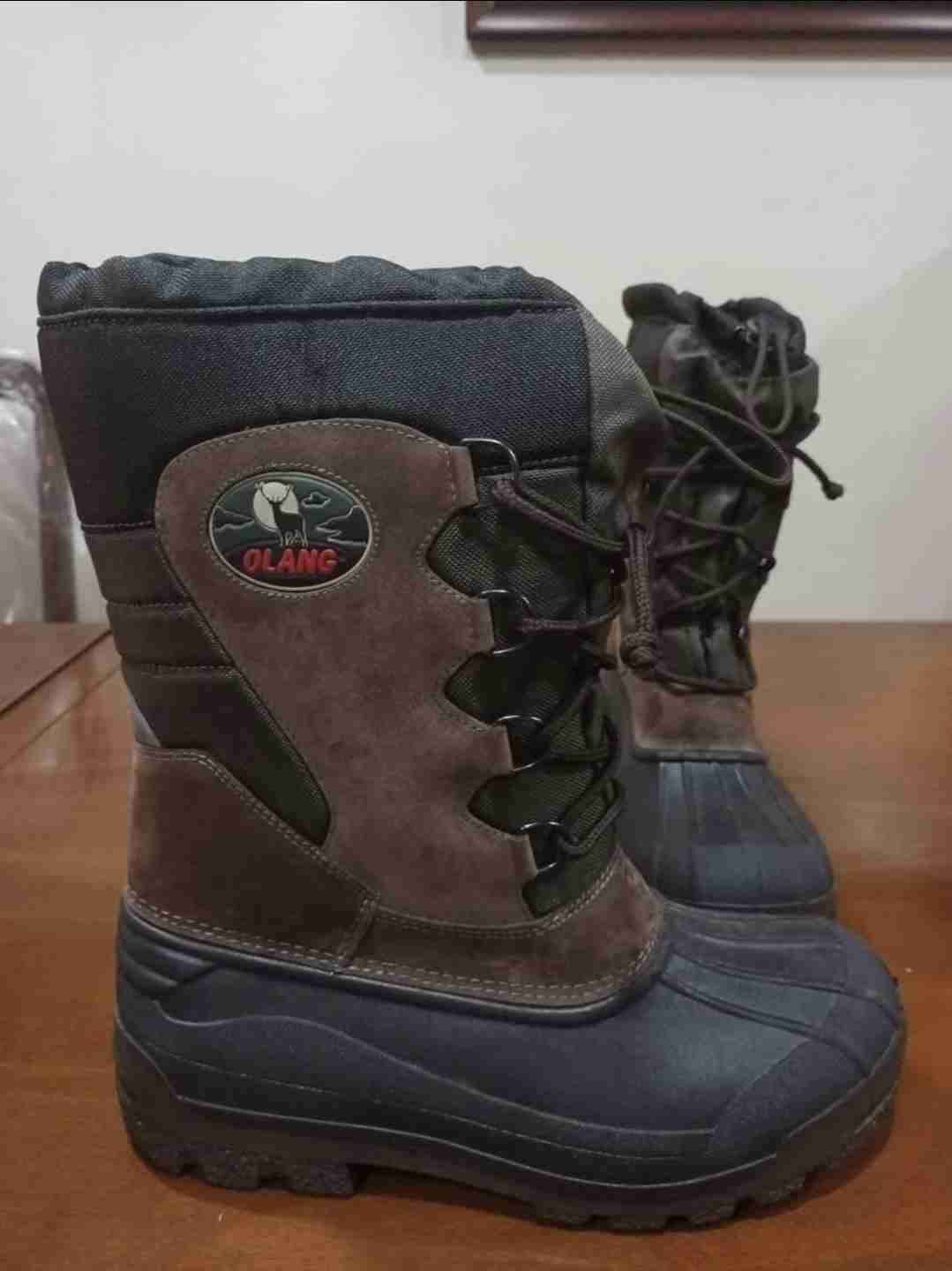 Botas de nieve Olang Canadian Earth Marca: Olang Canadian Earth Talla: 39/40 Color: Marrón Exterior resistente de gamuza sintética y poliéster. Fuelle ajustable y cierre de cordones. Suela duradera de alto agarre El forro de lana mantiene los pies extra calientes. Puños con cordón sellados contra la nieve. Forro de lana y plantilla de material multicapa con película de aluminio. Las Olang Canadian es una bota de nieve clásica para hombre. El forro de lana y la plantilla forrada de aluminio mantendrán tus pies cómodos y cálidos, mientras que la suela de goma te protegerá tanto del frío como de las inclemencias del tiempo. Estas botas de nieve para hombre tienen un estilo robusto de limberjack, gracias al resistente exterior de ante sintético y nailon. El refuerzo ajustable y el cierre de cordones hacen que sean muy fáciles de poner y quitar. Tenga en cuenta que esta bota no es 100 % impermeable, el agua puede penetrar en la bota por la línea de costura en la parte superior de la suela de la bota..
