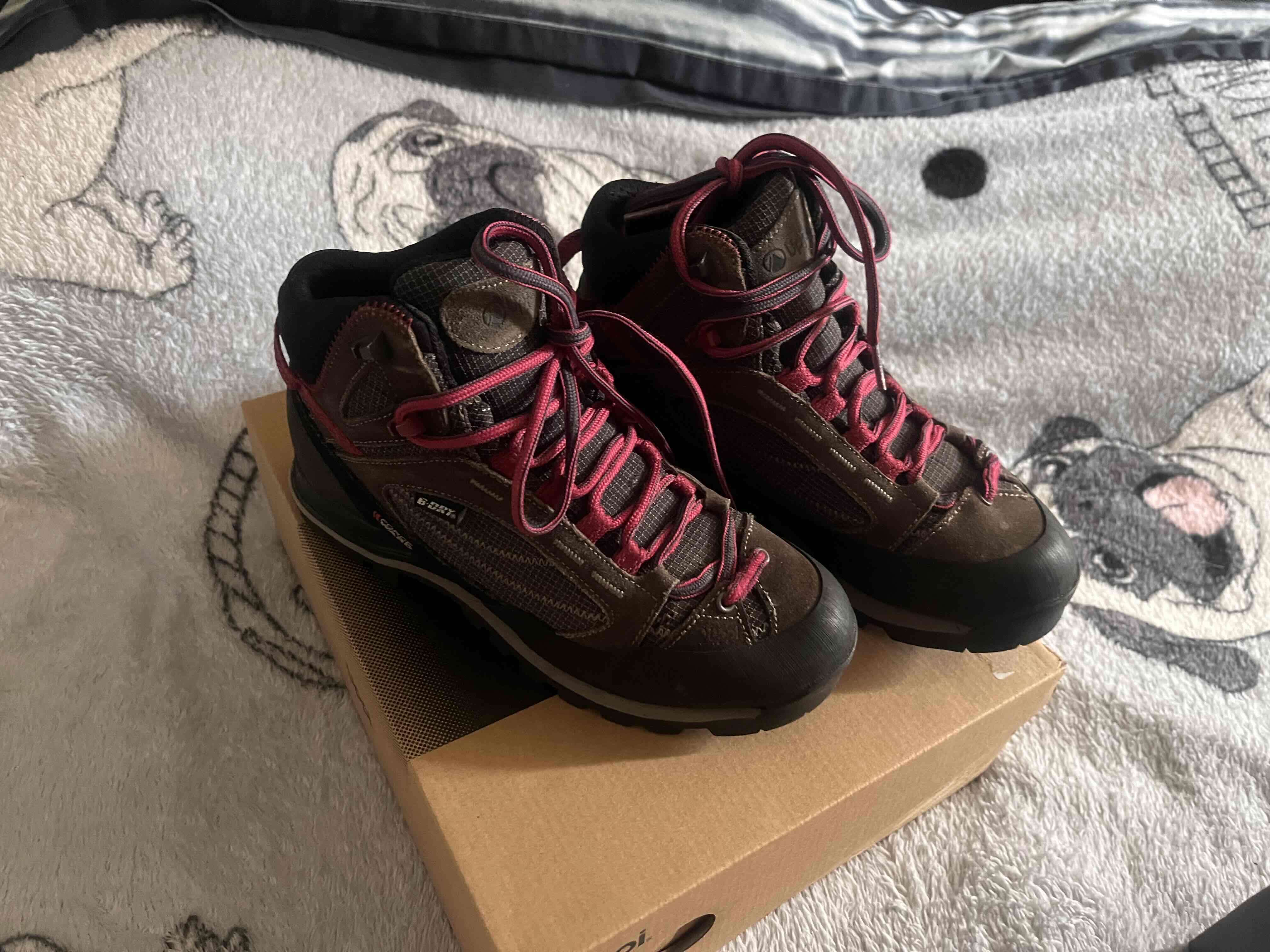 Botas de montaña marrones con detalles rosados, perfectas para aventuras al aire libre. En buen estado con poco uso ( una sola postura). Talla 37, US 7, 24 cm, marca Lippi B DRY(resistente al agua)