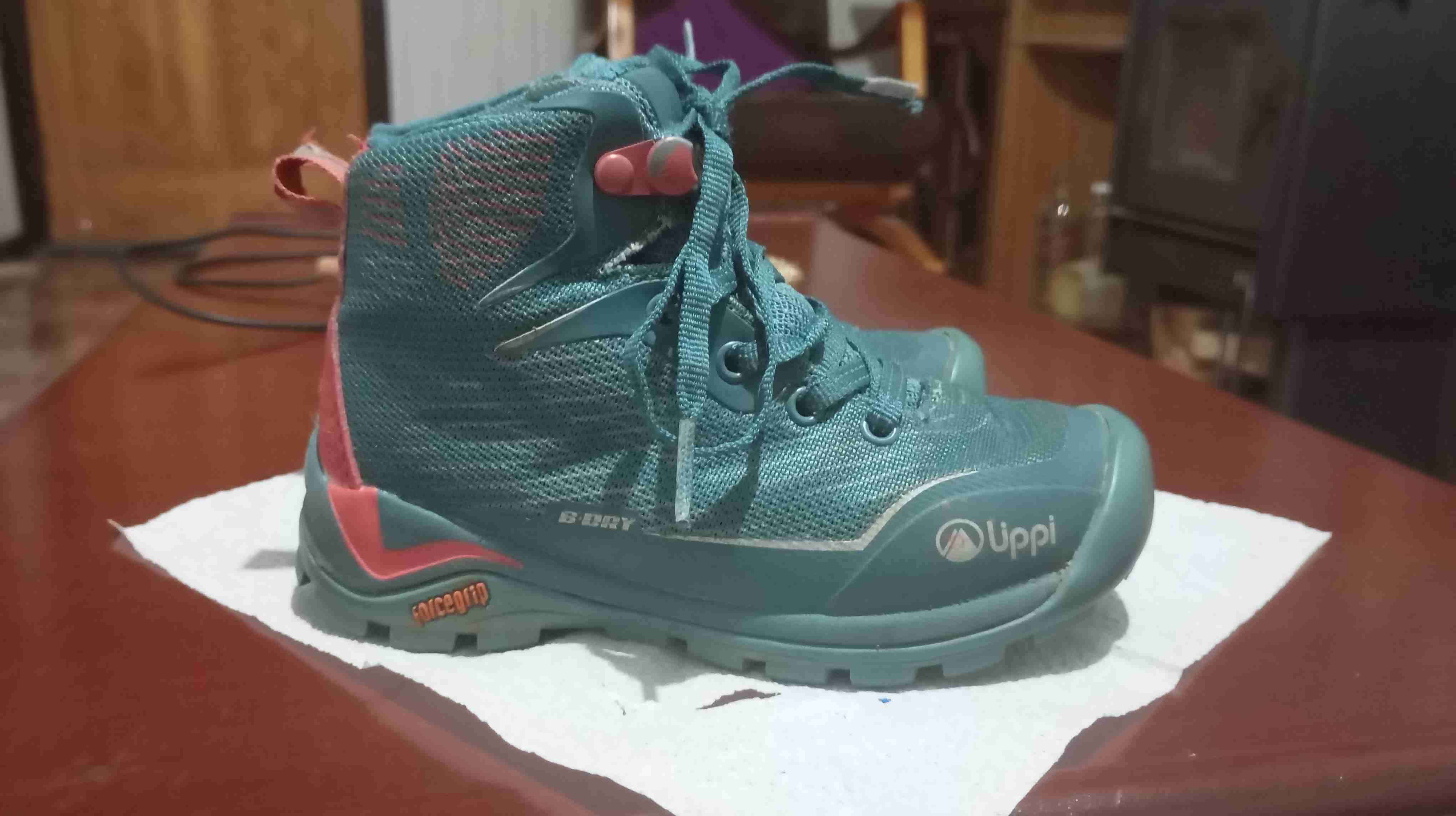 Botas deportivas en buen estado, color turquesa con rosado número 26 ideales para actividades al aire libre.