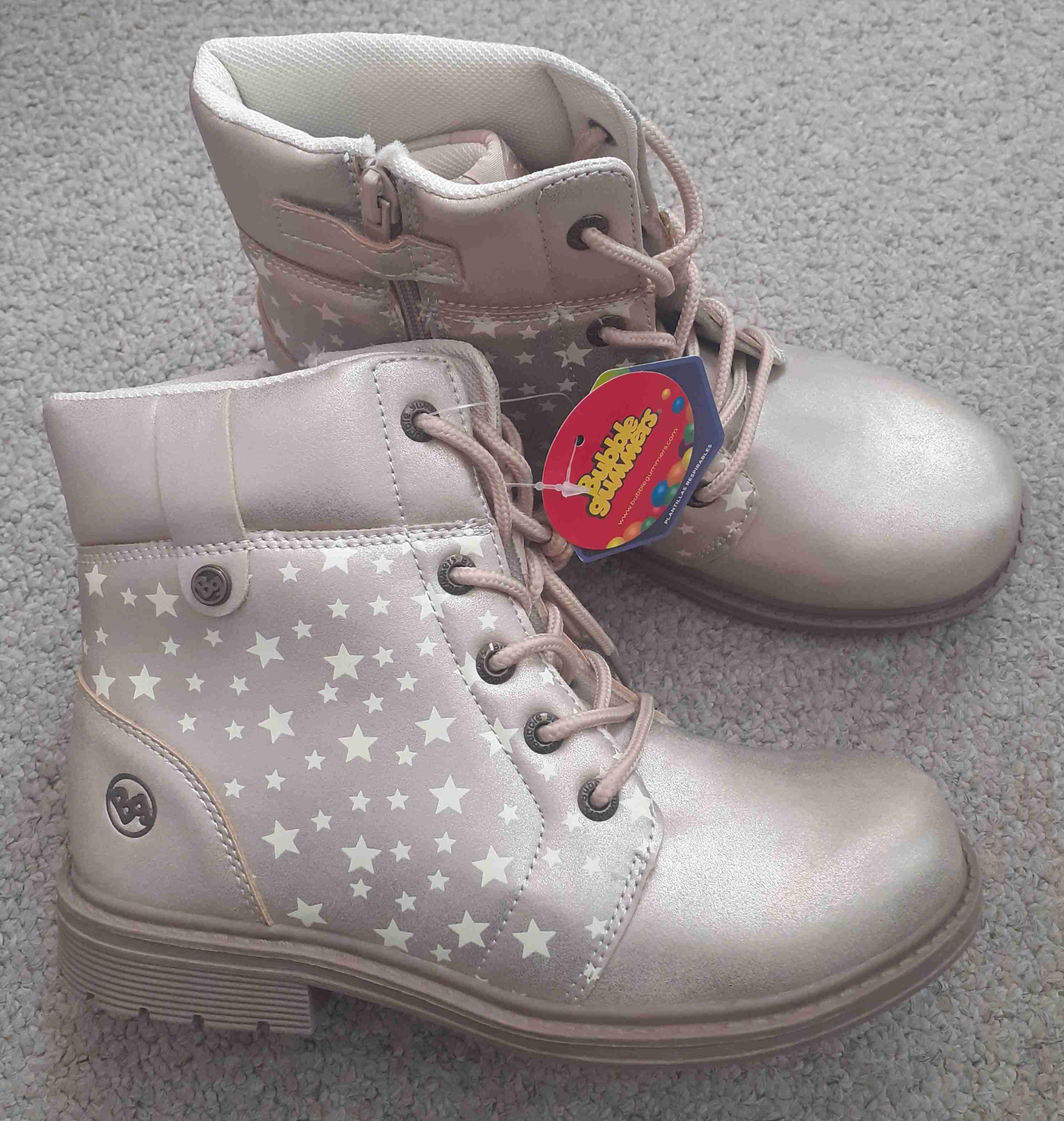 Botin Bubble Gummers infantiles, Numero 35, Nuevas, en color beige, plateado con diseño de estrellas, cierre al costado.Perfectas para el invierno y cualquier ocasión especial.