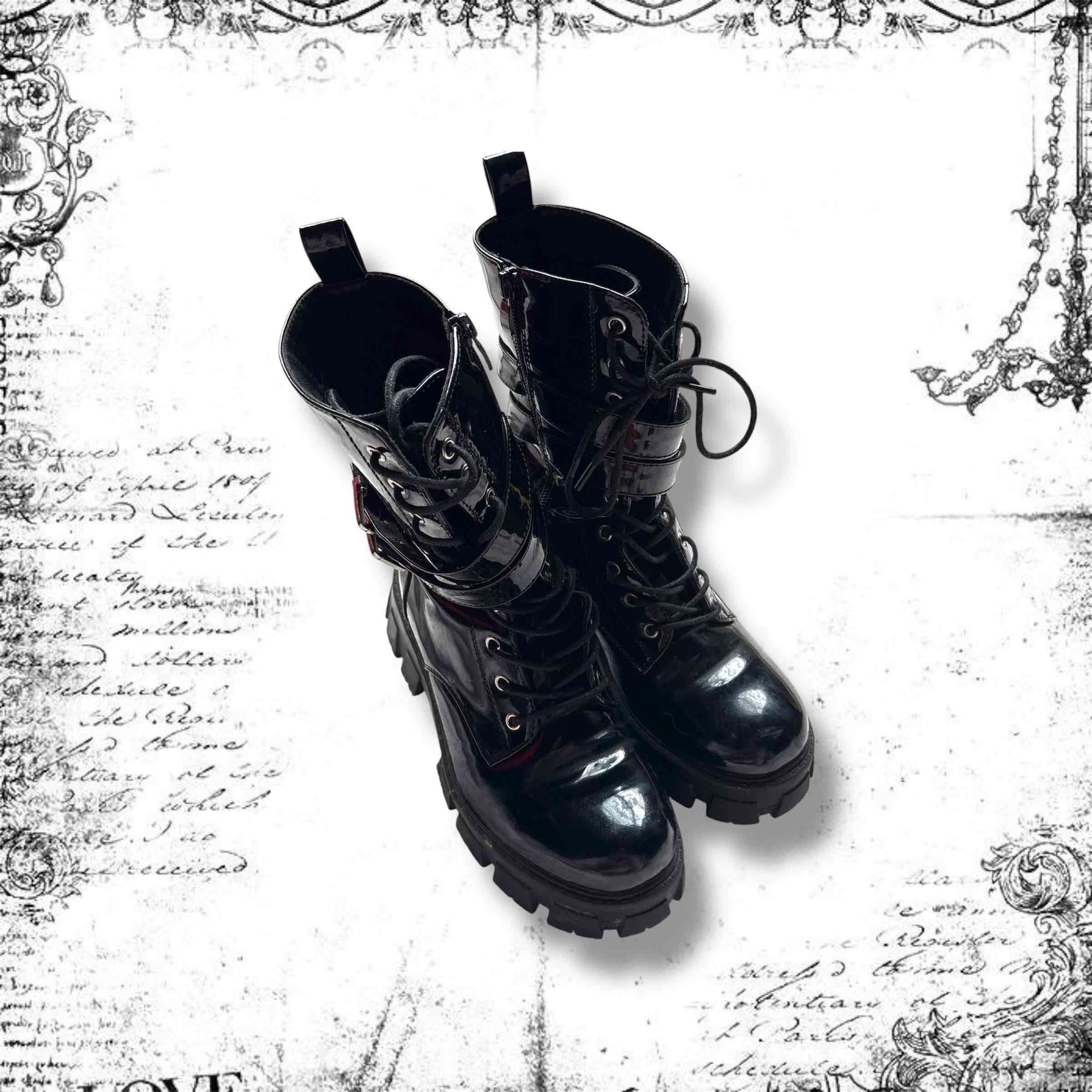 Elegantes botas negras estilo militar. En buen estado, ideal para looks alternativos.