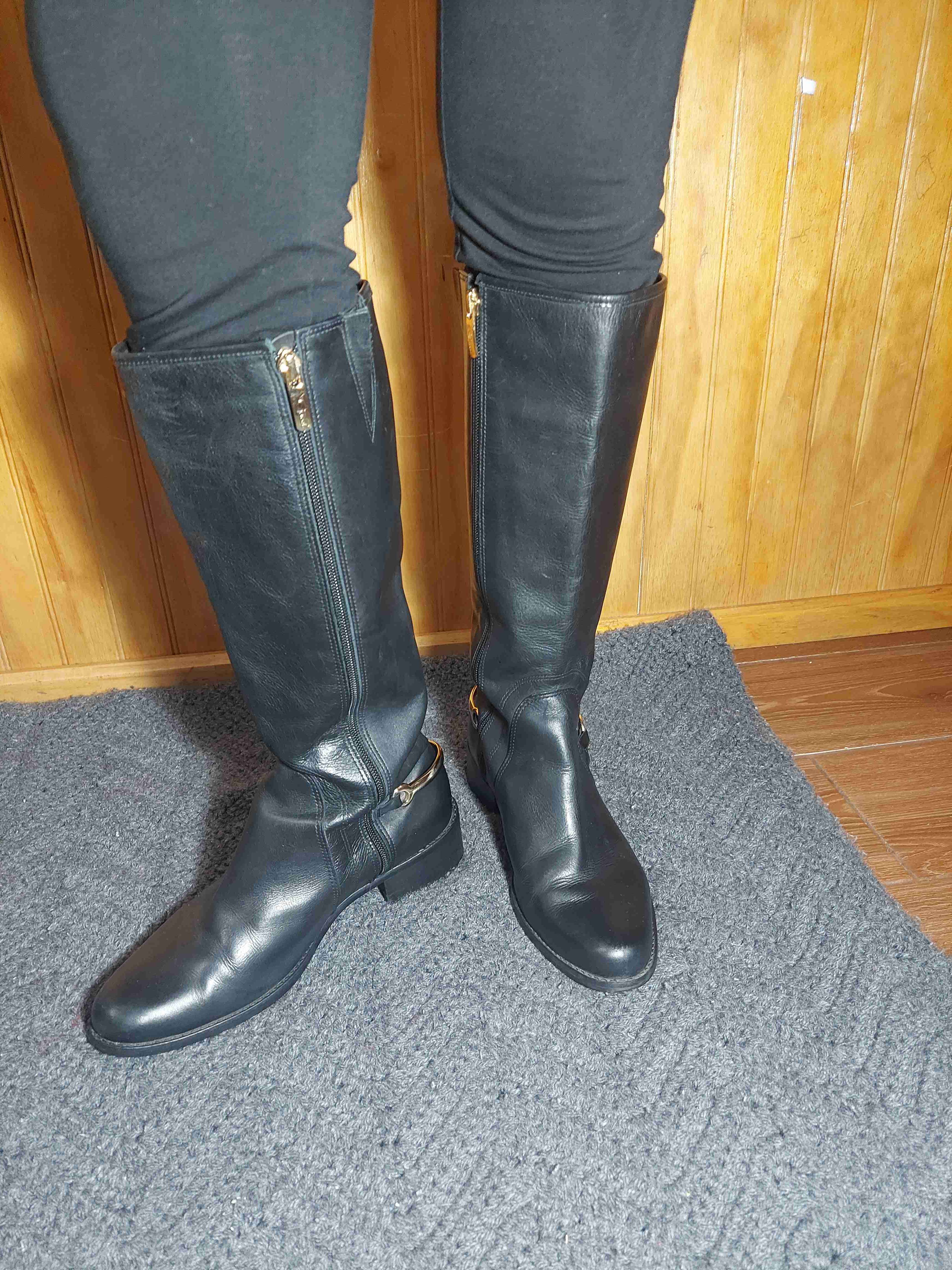 Botas de cuero negro con cierre lateral dorado. En buen estado, ideales para uso diario o salidas casuales.